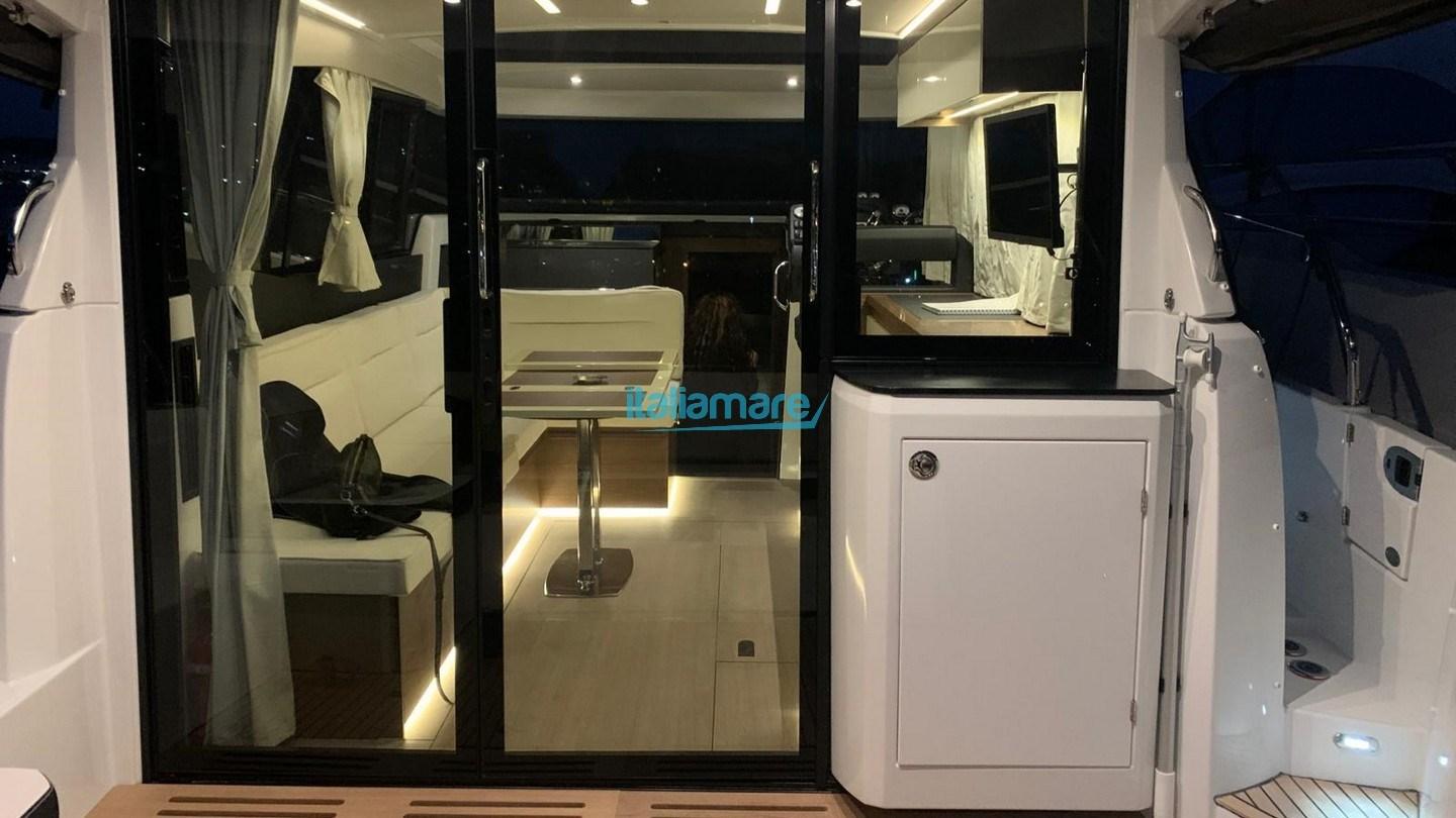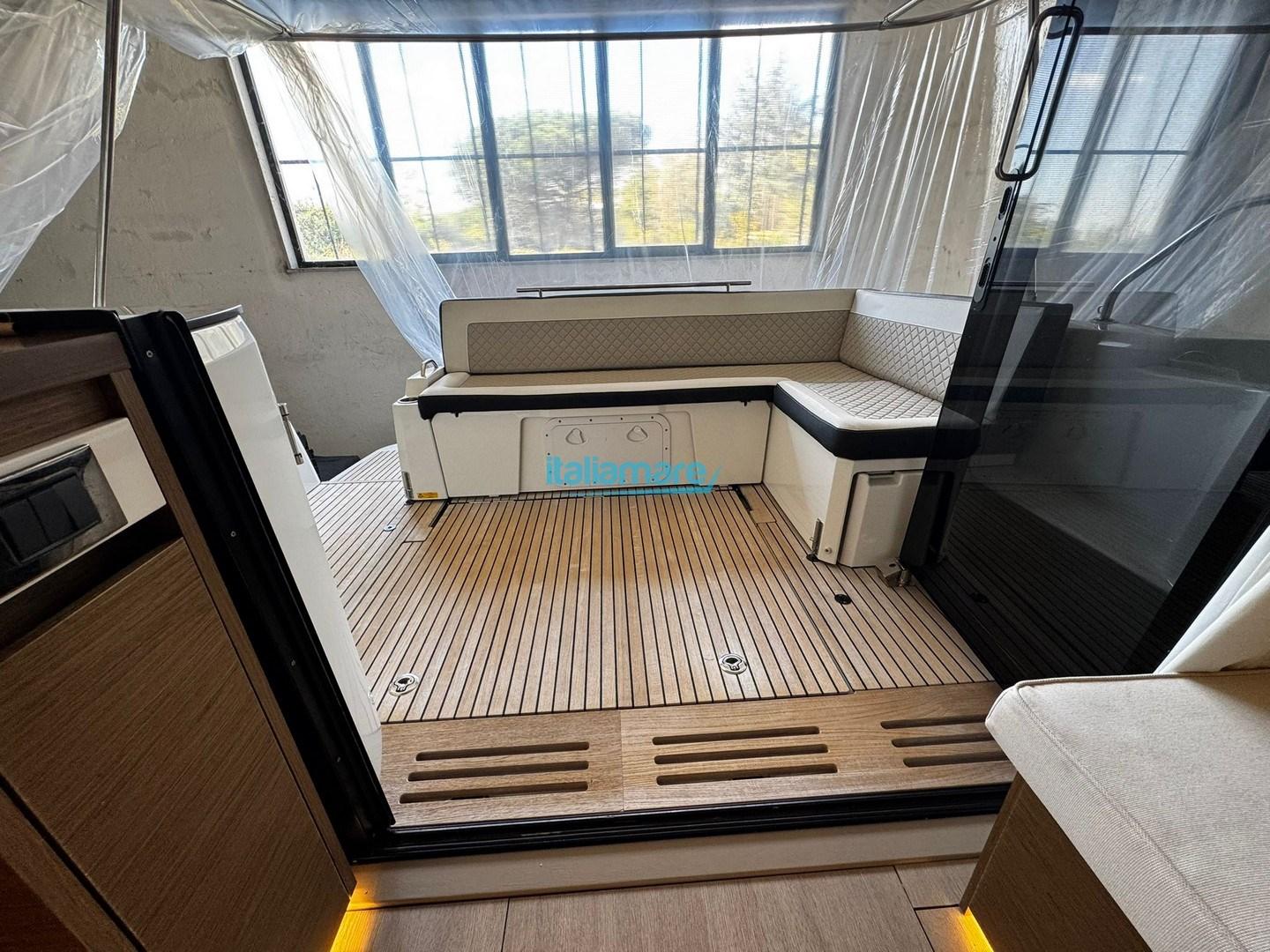 Accessori principali: Aria condizionata- GPS- Joystick- Pilota automatico- Camminamenti laterali in teak- Colorazione speciale- Teak in pozzetto- Piattaforma- TV