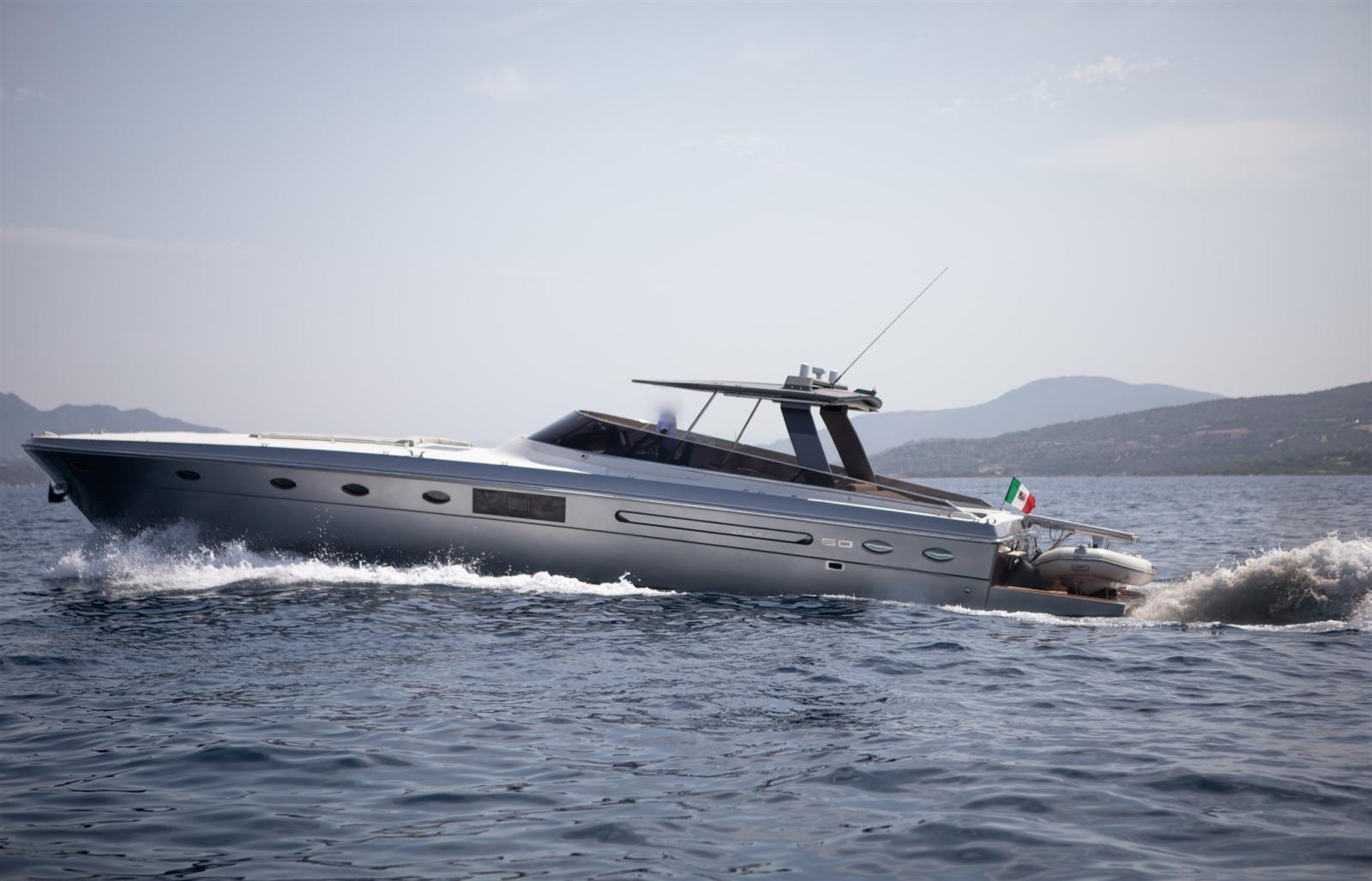 Itama Sixty è una potente imbarcazione in vetroresina dotata di due motori Man e di eliche di superficie per rimarcare la propria natura sportiva, le cui prestazioni straordinarie sono rese possibili dalla linea dello scafo, caratterizzata dalla V profonda.