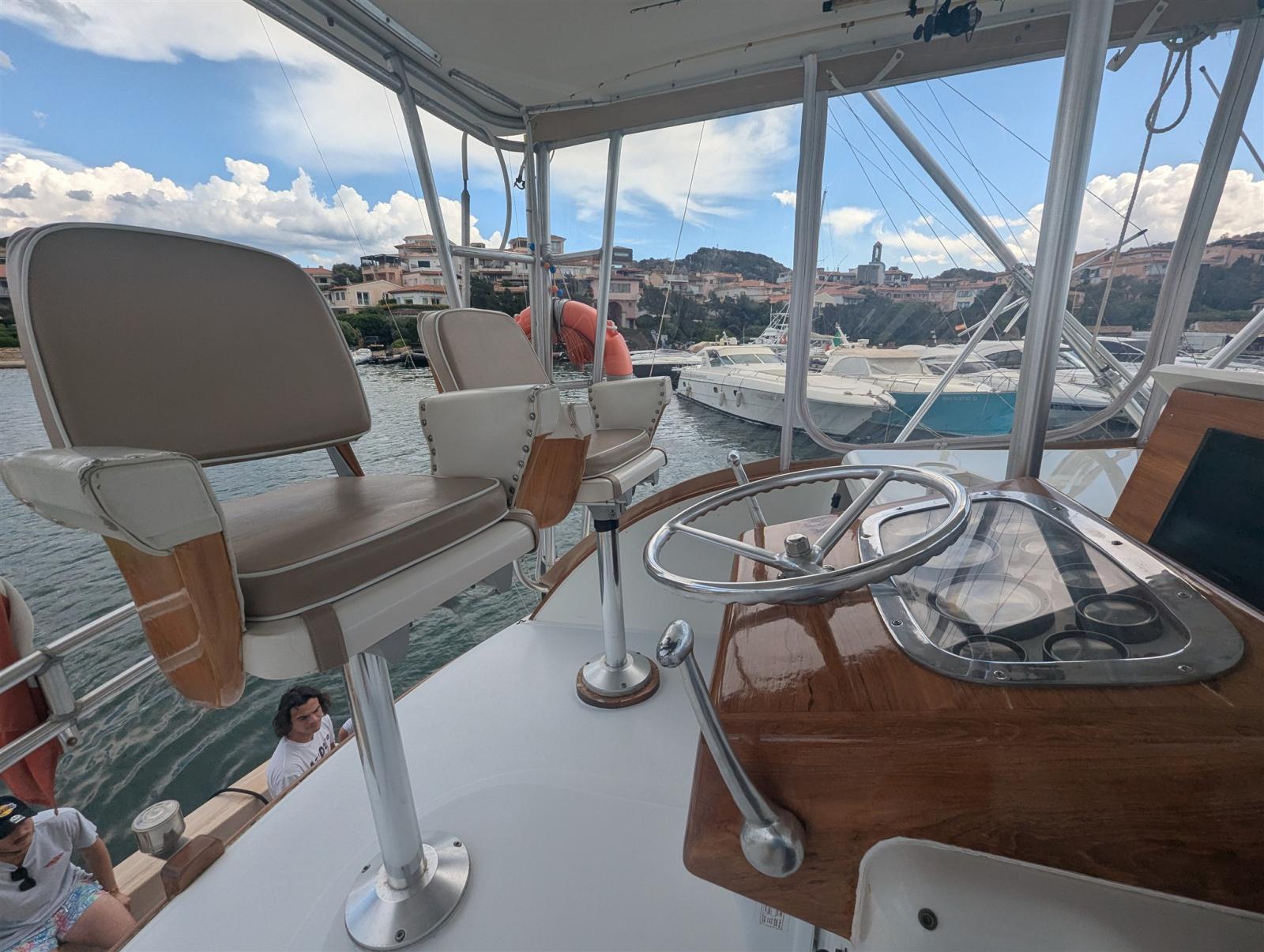 Angolo barra, Antenna radar, Contamiglia (Raymarine), Ecoscandaglio (Raymarine), GPS (Raymarine), Pilota automatico (Raymarine), 2 Plotter (Raymarine hybrid Touch), Sedile Copilota.