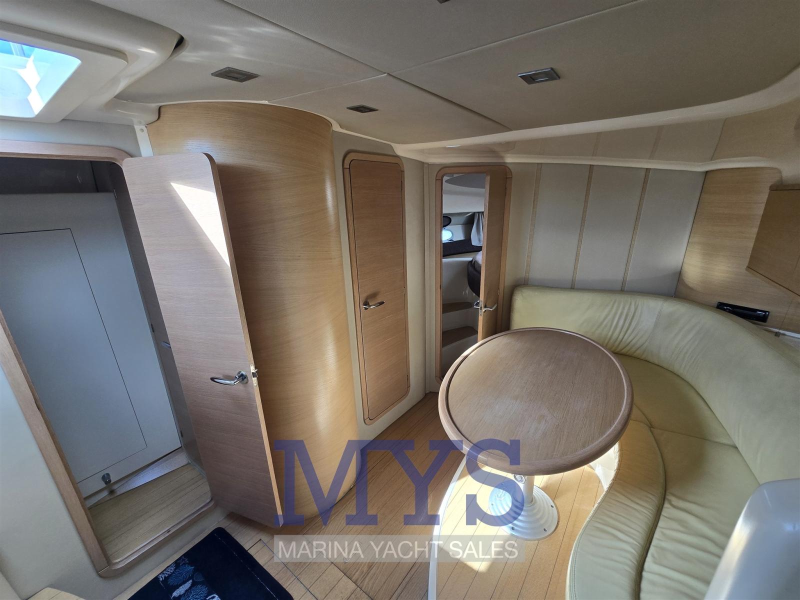 Allarme motore, Allarme sentina, Autoclave, Colorazione speciale (Scafo con fascia blù), Doccia esterna, Flap idraulici, Indicatori Flaps, Passerella (Idraulica), Piattaforma, Pompa di sentina automatica, Porta ingresso, Pozzetto Teak, Presa 220V banchina, Rollbar, Salpa Ancore Elettrico, Scaletta da bagno, Tavolo pozzetto, Tromba.