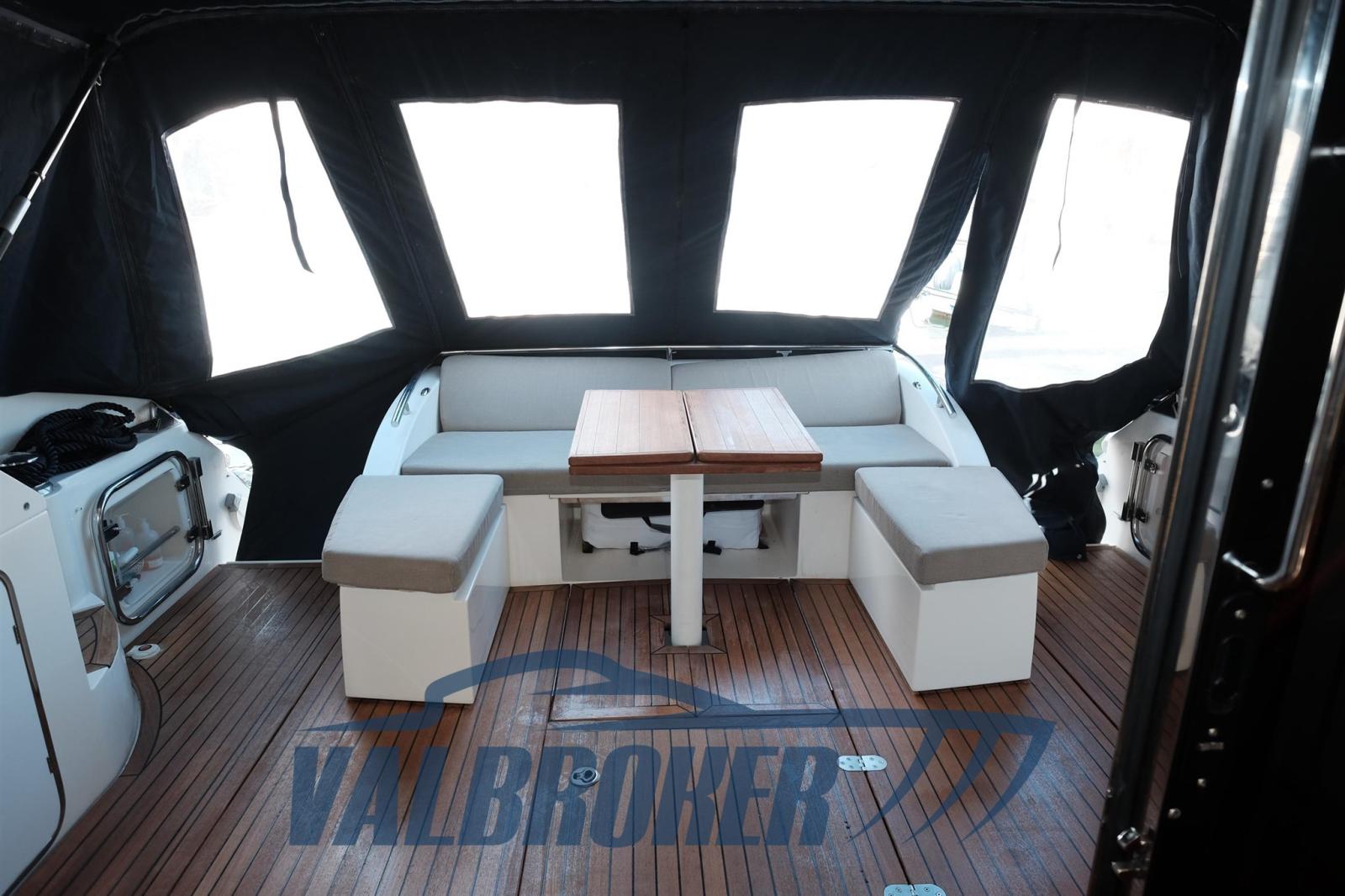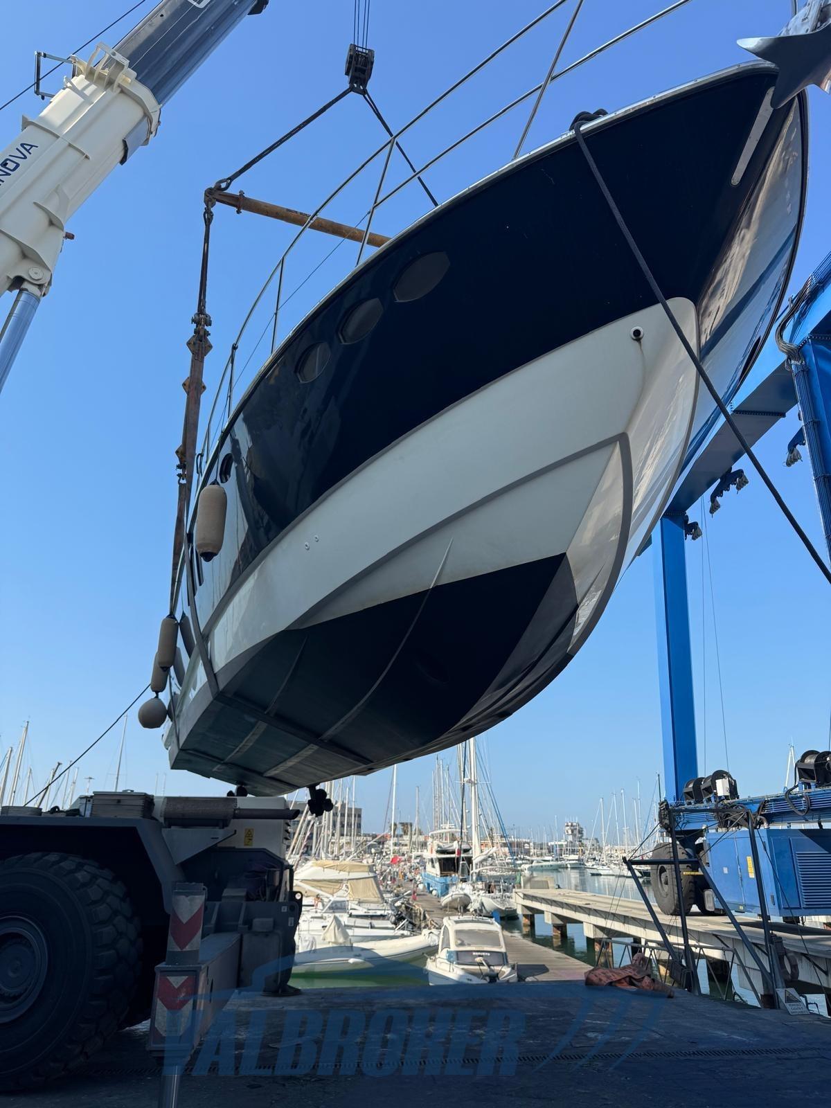 Hard top con porta e tetto apribile. Prima immatricolazione e utilizzo nel 2014. Uno dei primi modelli ad offrire tre cabine doppie e tre bagni. Estremamente versatile con spazi interni importanti. Motori 2xVolvo Penta IPS 600. Attualmente ha circa 500 ore di moto. stato completamente refittato tra il 2023 ed il 2024. I motori sono stati sbarcati nel 2023 e portati a zero ore e sostituiti con il programma ufficiale Volvo. Lavori eseguiti nel 2024: Revisione IPS da officina autorizzata Volvo, nuovo chartplotter Raymarine con radar, Pulizia serbatoi diesel, nuovo caricabatterie, nuove batterie servizi, rifacimento sedili pilota, nuovo teak pozzetto. Rina valido fino al 2028.