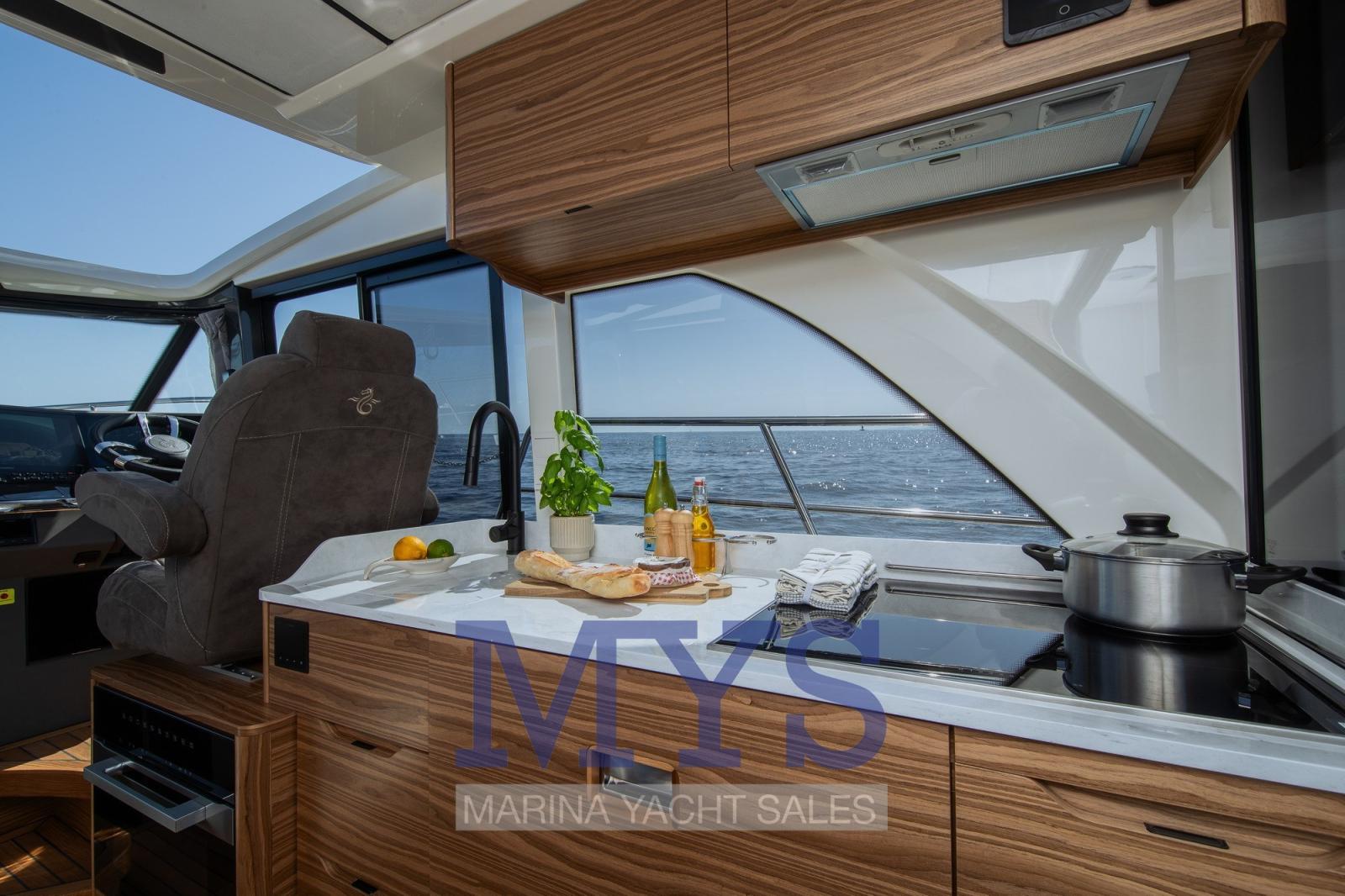 Cucina sul ponte principale sulla finacata DX completa di lavello, frigo e forno