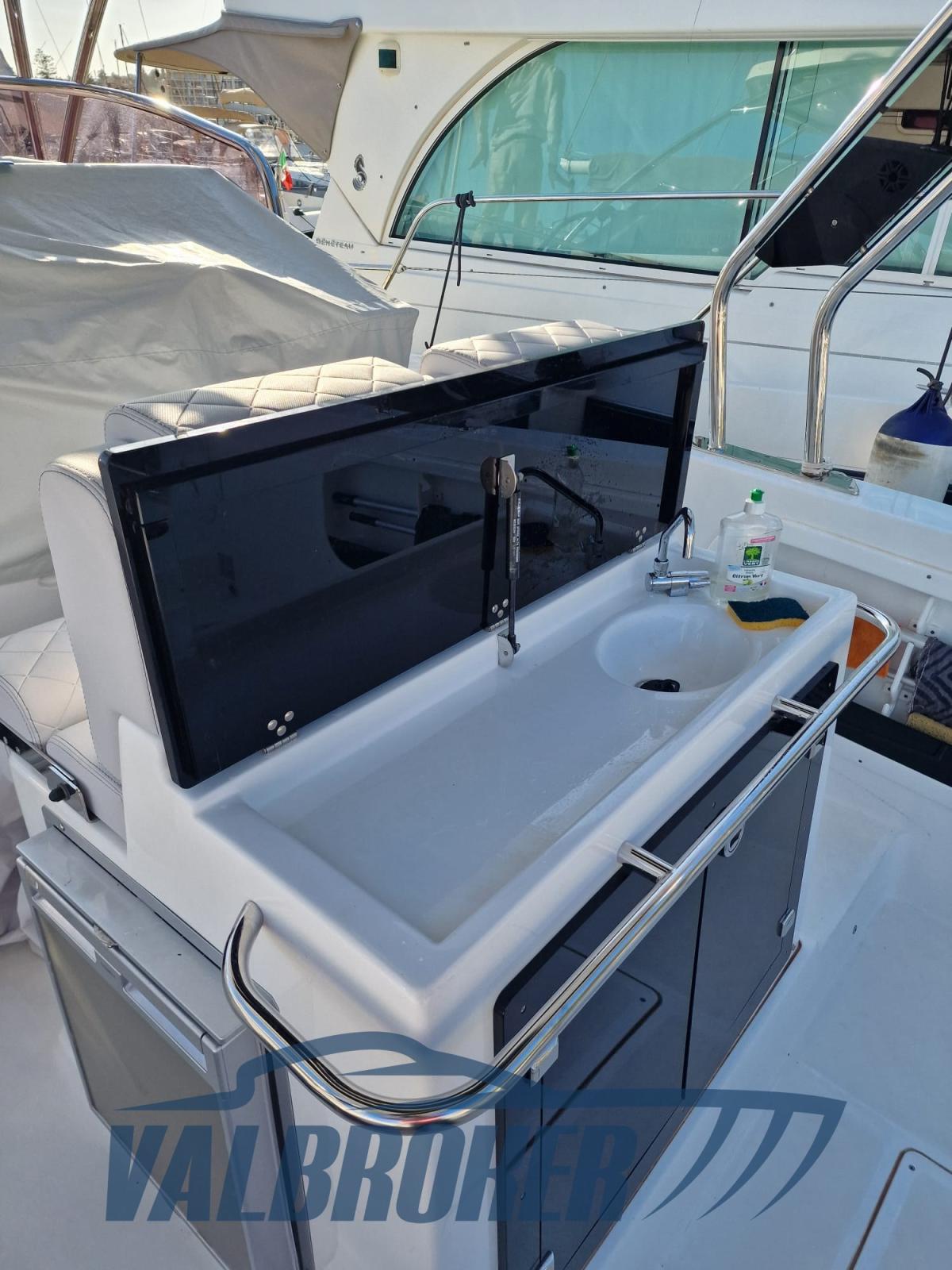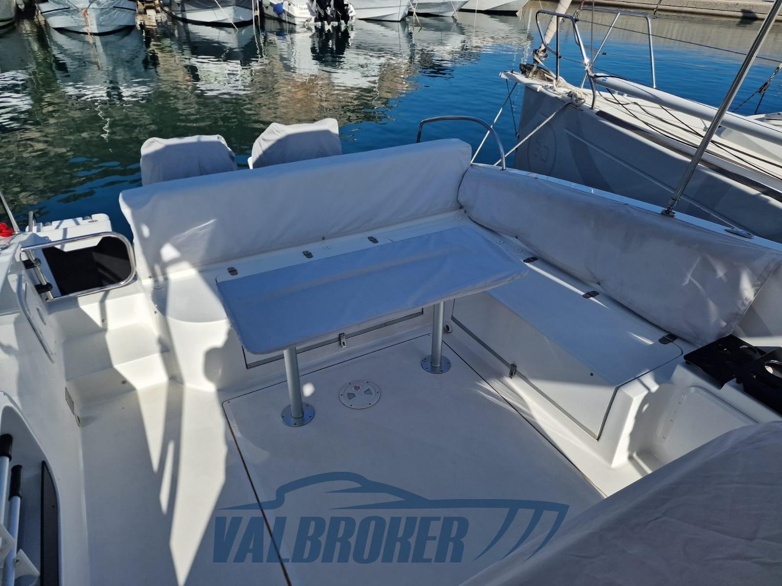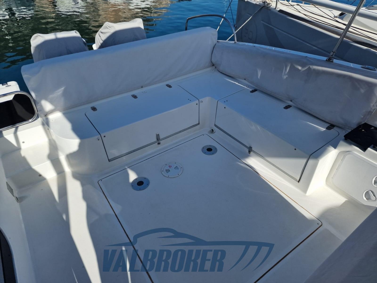 Walkaround dal design moderno ed il layout ottimizzato. Natante con pozzetto spazioso e spazio sottocoperta. Motorizzato con 2x Suzuki DF 300 V6. I motori sono in garanzia fino a Luglio 2026. Unico proprietario.