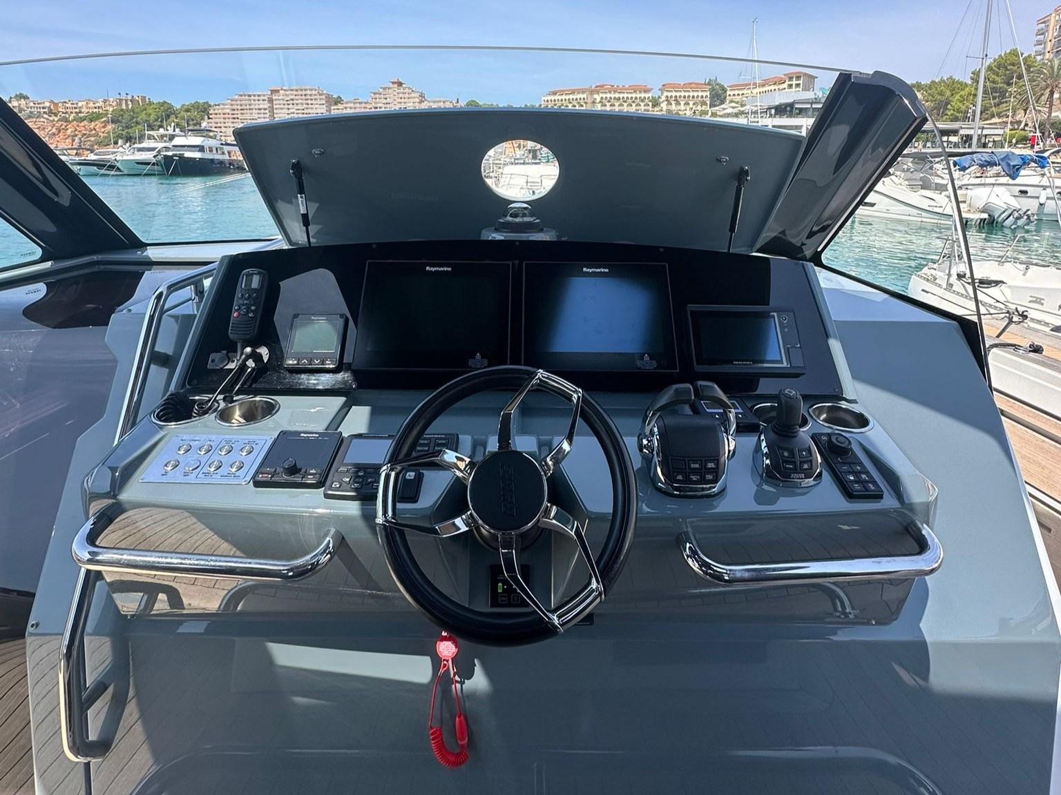 Angolo barra, Comando motori elettronico (EVC), Contametri catena (Quick), Display (7" Volvo Trip Computer), DSC vhf (Raymarine), Joystick (Volvo Penta), Pilota automatico (Raymarine Evolution), 2 Plotter (Raymarine GS125), 2 Sedile Copilota.