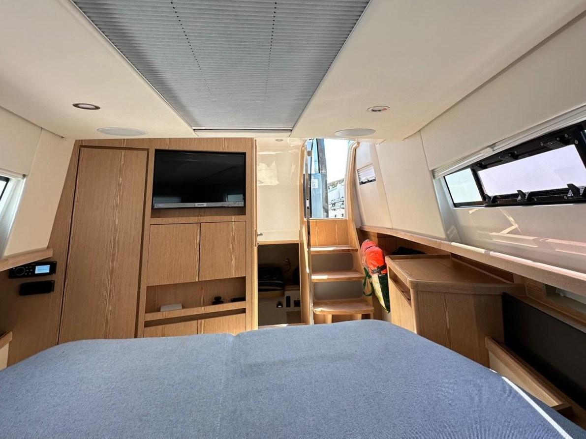 Boiler, Inverter (3000W 150 Amps), Pavimento interno in legno (Pale Acacia), Prese interne 12v, Prese interne 220v, Serbatoio Acque Nere (60 ltrs), WC marino elettrico.