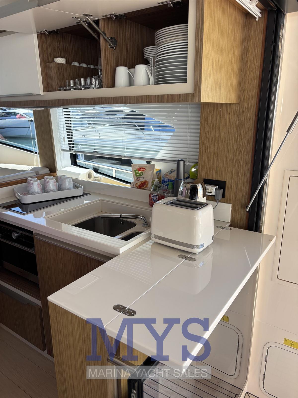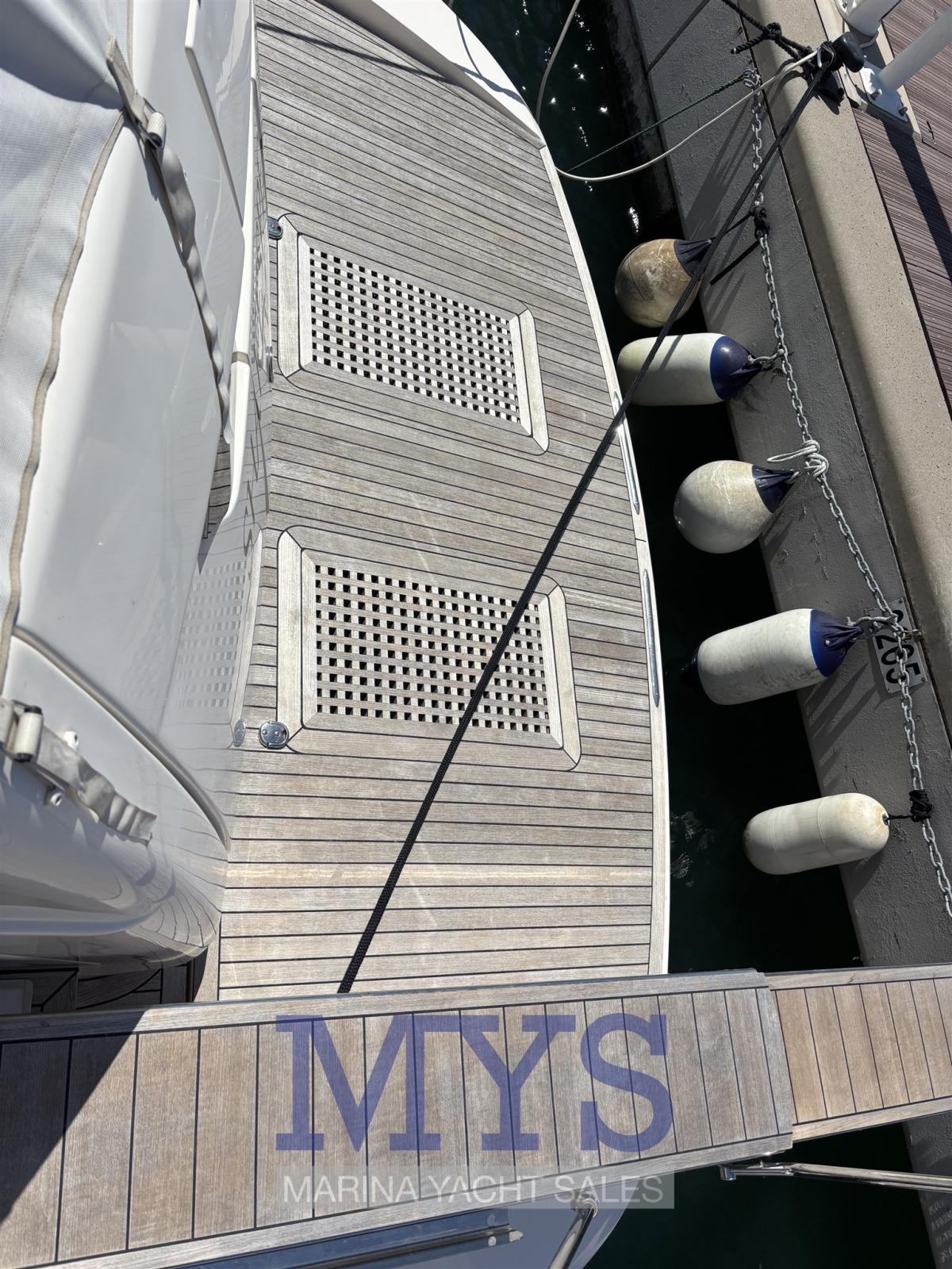 Allarme motore, Alternatore, Aspirazione dal Ponte delle Acque Sporche, Auto Dynamic Trim Interceptor, Autoclave, Camminamenti laterali in teak, Cavo corrente di banchina, Corrimano, Doccia esterna, Doppia timoneria, Faro orientabile, Flap elettrici, Impianto antincendio, Indicatori Flaps, Luci di cortesia, Luci subacquee, Parabordi, Passerella, Piattaforma, Pompa di sentina automatica, Porta ingresso, Pozzetto Teak, Presa 220V banchina, Ripetitore strumentazione, Rollbar, Salpa Ancore Elettrico, Scaletta da bagno, Tavolo pozzetto, Tavolo Salone Abbattibile, Tromba, Winch tonneggio di poppa.