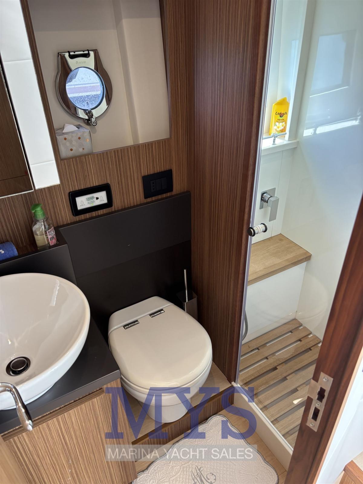 1 Cabina matrimoniale armatoriale di poppa a tutto baglio con bagno completo di lavabo,doccia e WC marino elettrico