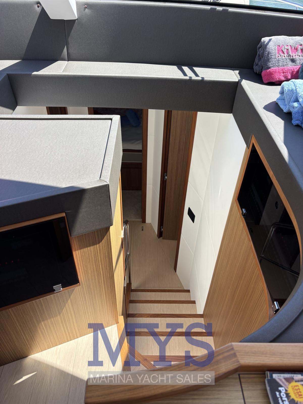 Il CAYMAN F 520 non si limita a brillare per le sue capacità tecniche, ma eccelle anche in termini di comfort. Con le sue tre cabine spaziose, offre uno spazio vitale confortevole e raffinato per te e i tuoi ospiti. Queste cabine sono perfette per notti tranquille in mare, con allestimenti moderni e finiture di alta gamma. Inoltre, la piattaforma posteriore idraulica consente un facile accesso al mare, ideale per nuotate, sport acquatici o per lo sbarco in porto.