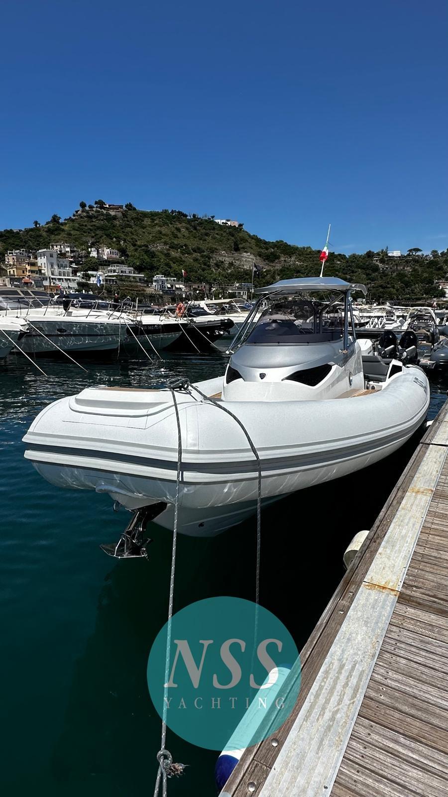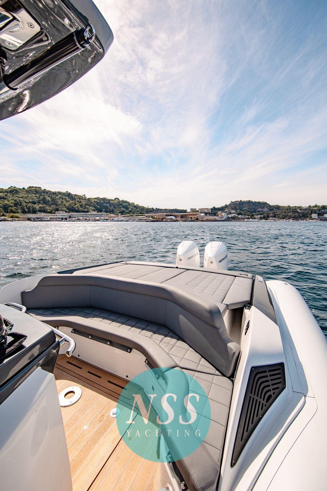 Nello specifico questa unità consegnata nel giugno 2023 è in condizioni impeccabili: dotata di due Mercury da 400cv con joystick, raggiunge una velocità massima di 48 nodi. Elegante, completa con un'ottima dotazione di accessori, è una splendida soluzione per chi cerca un battello versatile, che si fa notare, ma anche funzionale e sportivo.