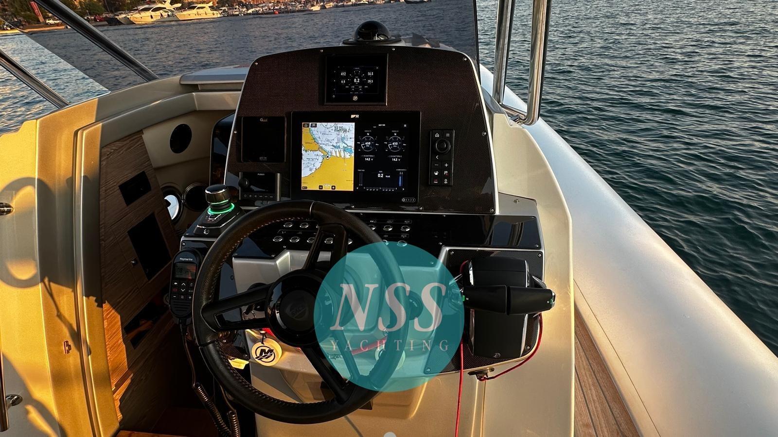 Contametri catena (Quick), DSC vhf (Raymarine RAY90), Joystick, Monitor dei consumi, Plotter con antenna GPS (Raymarine Axiom +12), Quadro comandi, Sedile Copilota, Sonar.