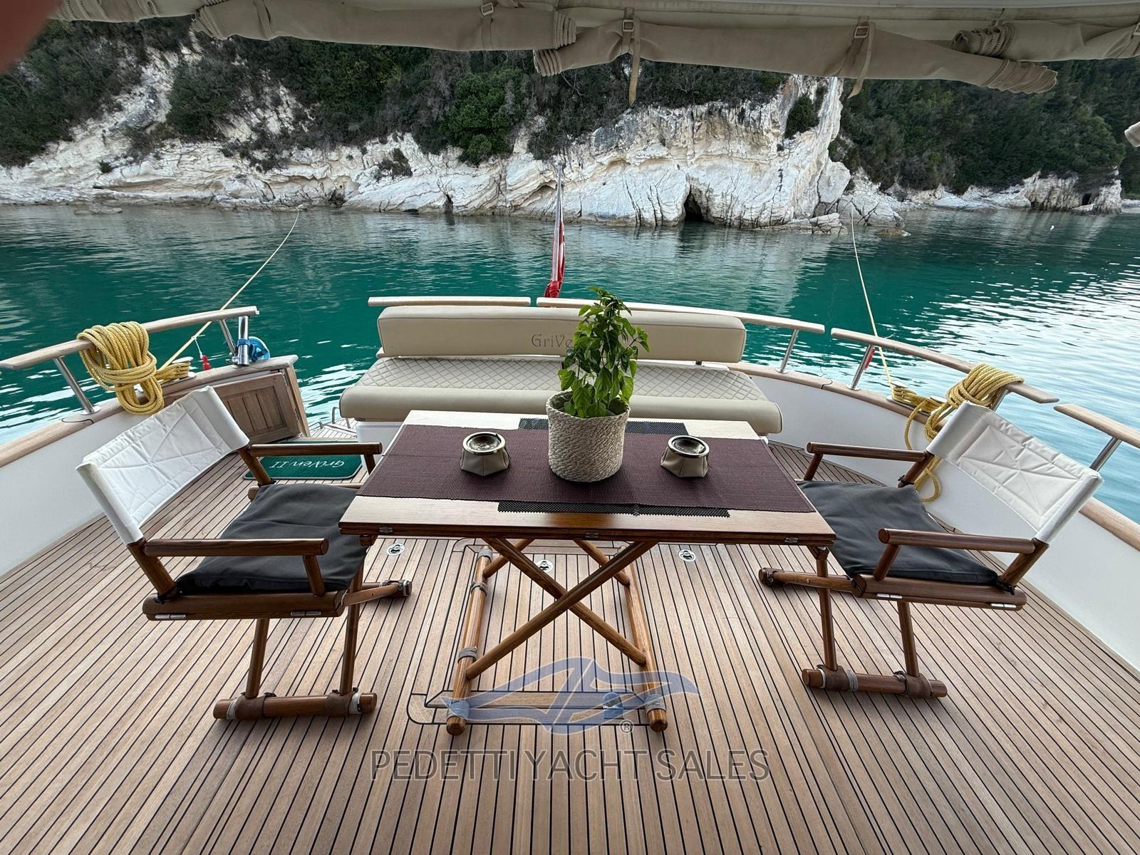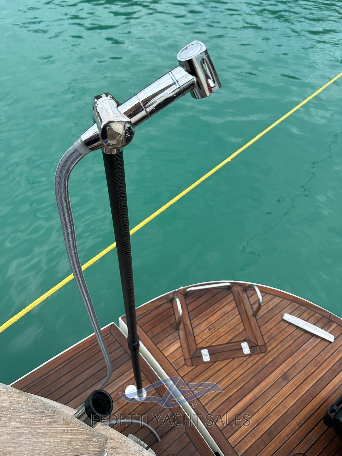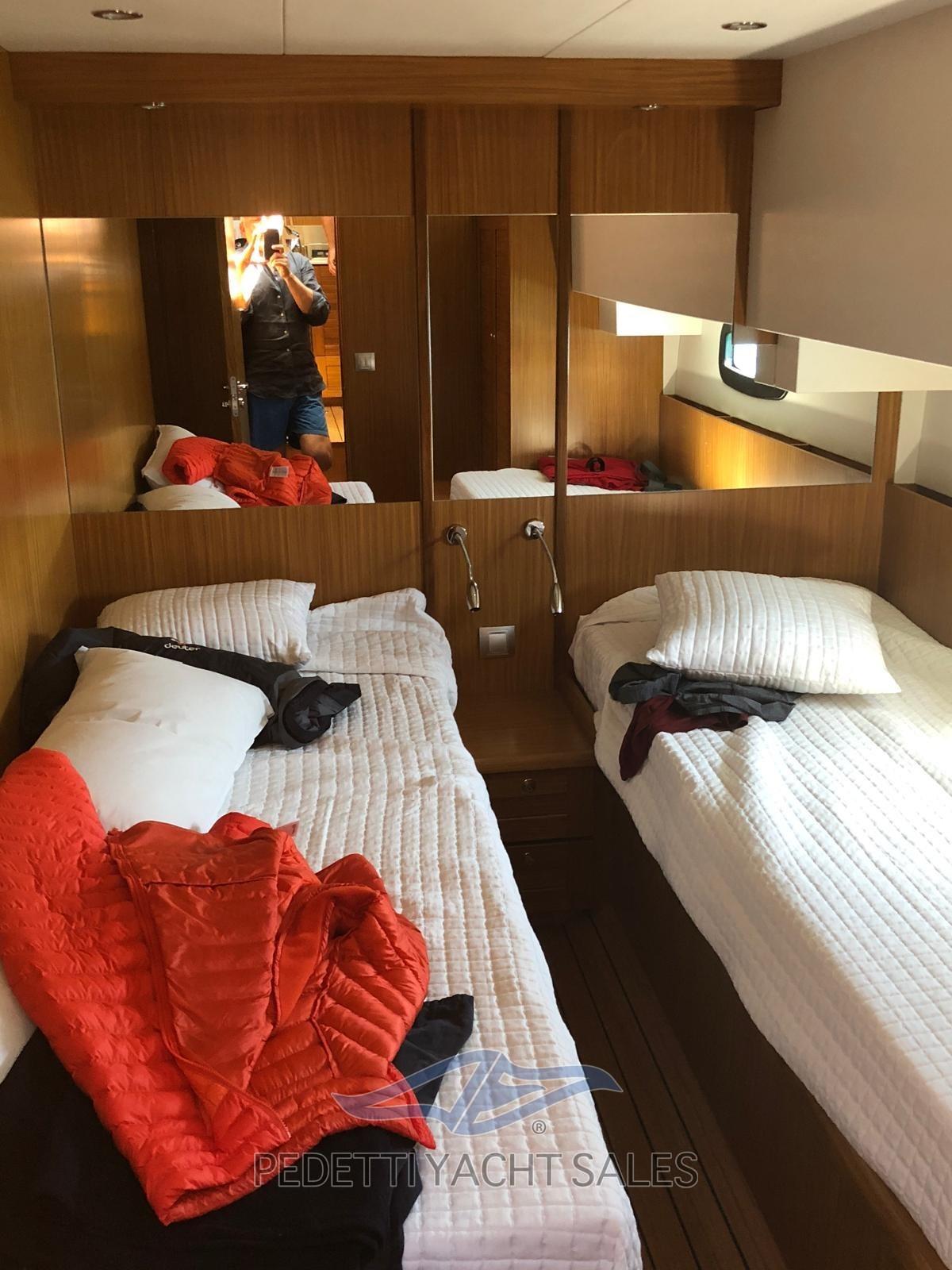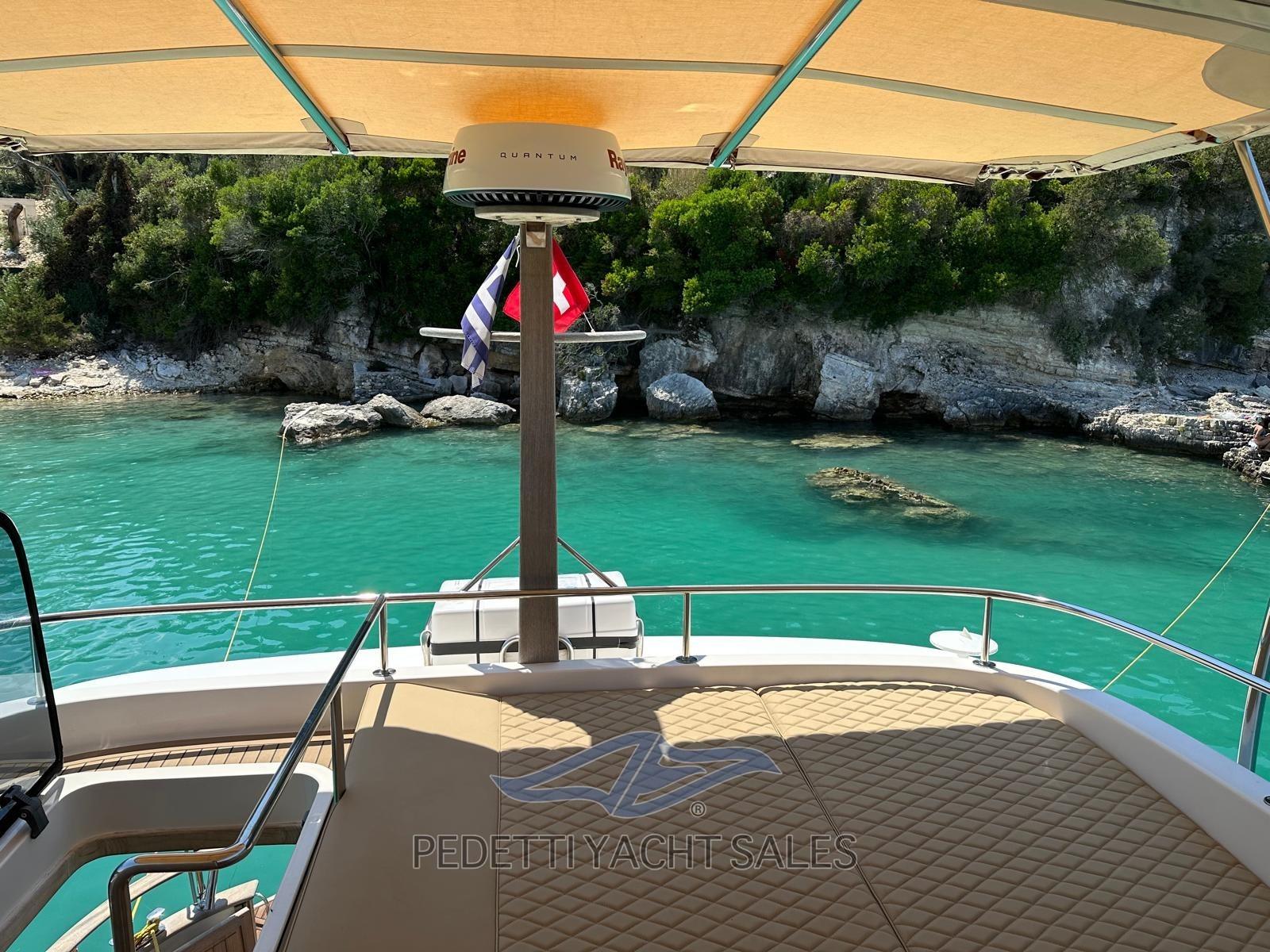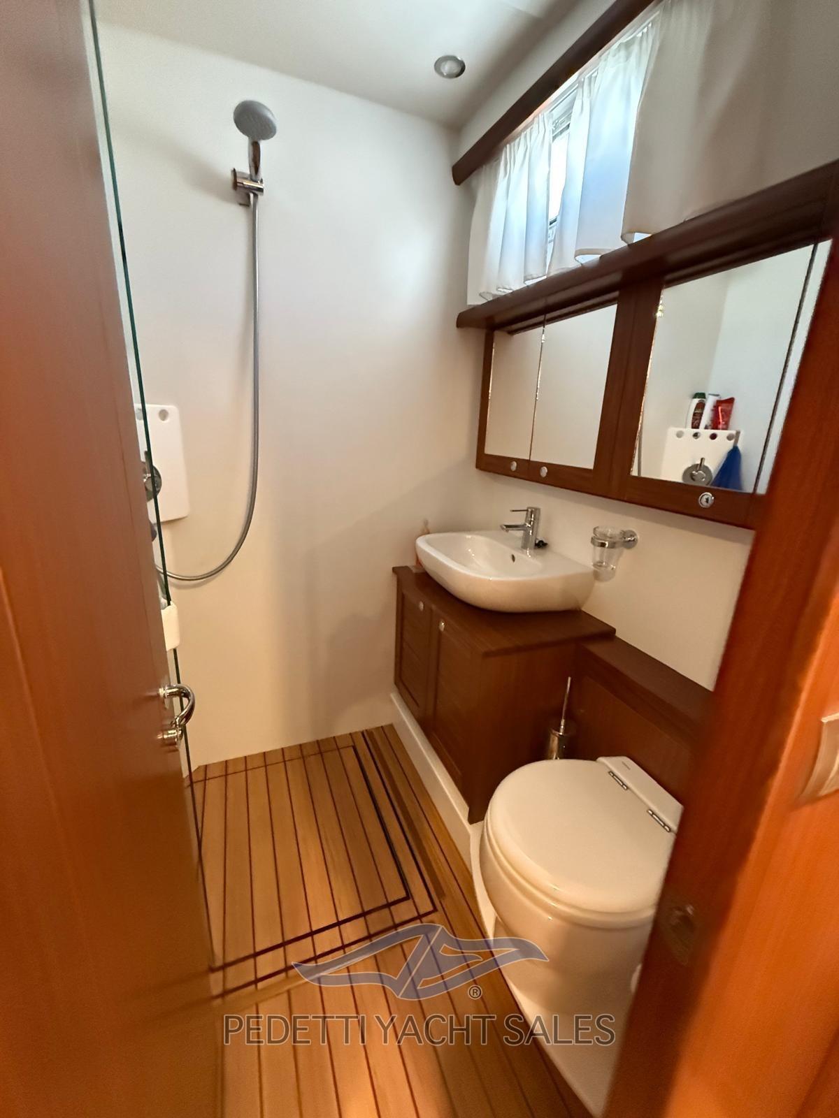 2xVolvo Penta 435 Hp con 1.400 ore di moto, completamente revisionati (aqnche il genratore) nel 2025 con fatture disponibili, stabilizzatori dinamici Humphree elettrici con due pack batterie e 2 caricabatterie dedicati, pannelli solari calpestabili su fly bridge ad alto rendimento, dissalatore 140 lt/h, dotazioni sicurezza, EPIRB, elettronica completa raymarine con radar e strumenti vento con doppio schermo in timoneria e sul flybridge, telecomando pilota automatico, contametri catena ancora, piattaforma di poppa idraulia, passerella idraulica a scomparsa, generatore 10 Kw, elica di prua e di poppa, aria condizionata, TV a scomparsa nel salone, impianto stereo con altoparlanti esterni ed interni con fader control, Yacht controller, cuscineria 10esterna nuova 2023, Tendalino fly bridge custom, tendalino di prua, tenalini pozzetto, telecamere FLIR poppa e prua con augmented reality, teak in pozzetto, porte esterne in teak naturale, mobile grill con lavello e frigorifero sul flybridge, tavolo sul fly bridge, divano a poppa in pozzetto, con gavoni, ancora Ultramarine in acciaio, luci subacquee a poppa, 3 frigoriferi (cucina, salone e fly bridge), congelatore a pozzetto in cucina, lavastoviglie, lavasciuga, cucina a gas tre fuochi con fermapentole, presa acqua porto, uscita acqua dolce a prua, doccia esterna nuova con supporto, tender in fibra di carvbonio con fuoribordo 20hp, trattamento Prospeed assi ed eliche.