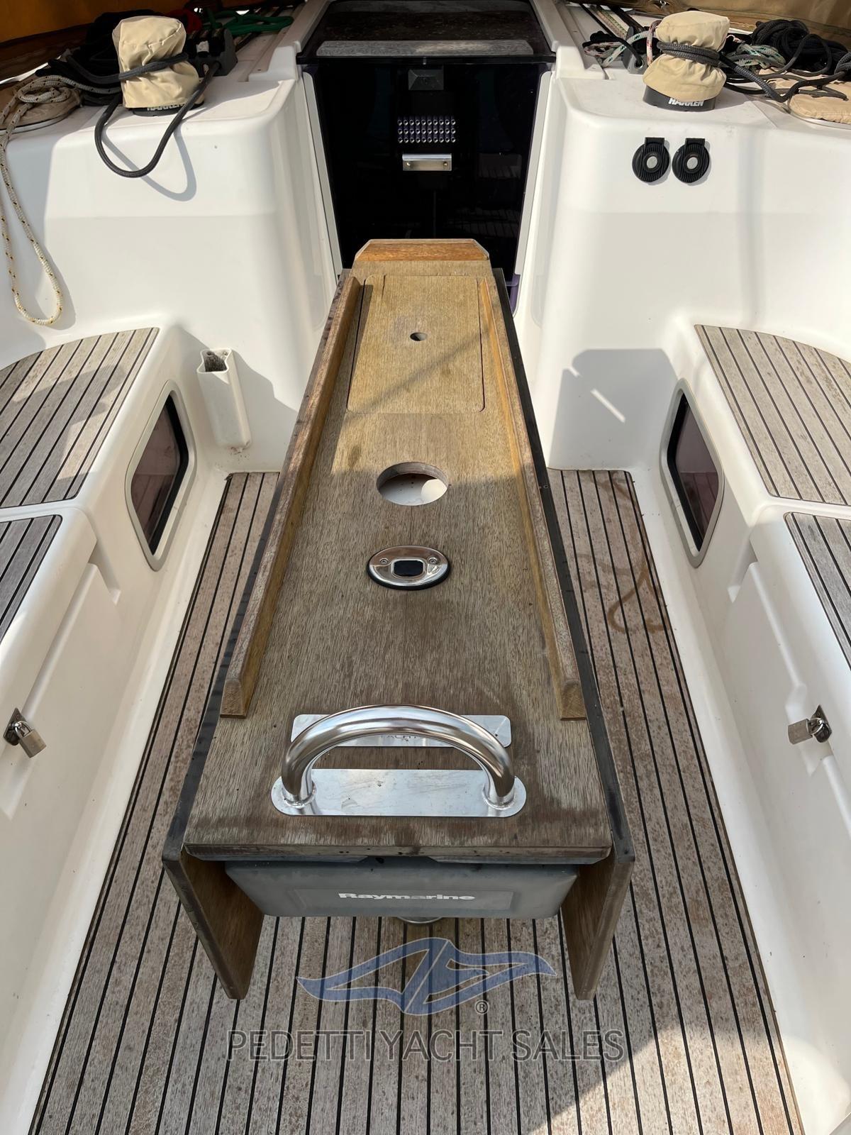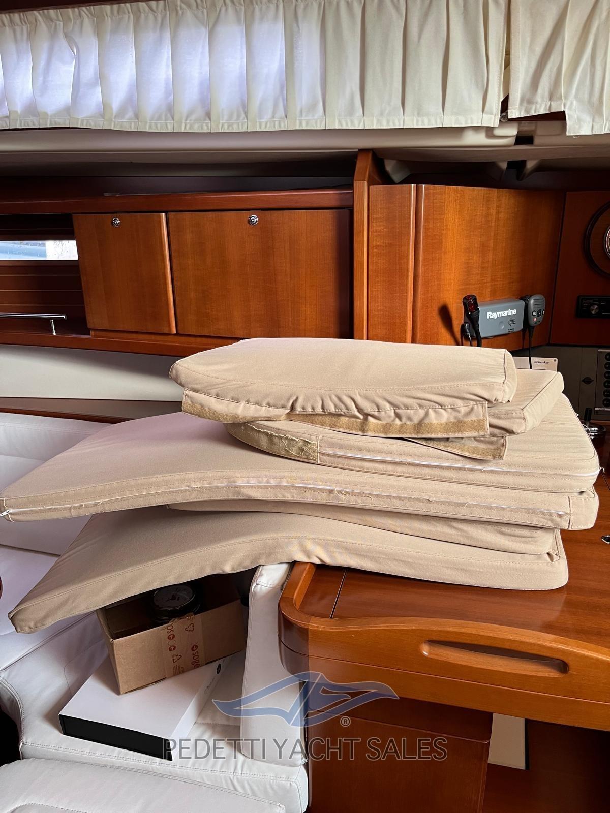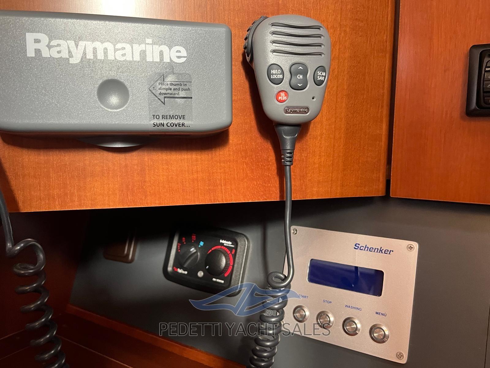 Allarme fumo/gas, Allarme motore, Allarme sentina, Alternatore, Autoclave, Camminamenti laterali in teak, Cavo corrente di banchina, Doccia esterna, Doppia timoneria, Impianto antincendio, Luci di cortesia, Pannelli Solari, Parabordi, Piattaforma, Pompa di Scarico del Serbatoio Acque Reflue, Pompa di sentina automatica, Pompa di sentina manuale, Ponte in teak, Pozzetto Teak, Presa 220V banchina, Salpa Ancore Elettrico, Sartiame in tessile, Scaletta da bagno, Tavolo pozzetto, Tavolo Salone Abbattibile, Winch, Windex.