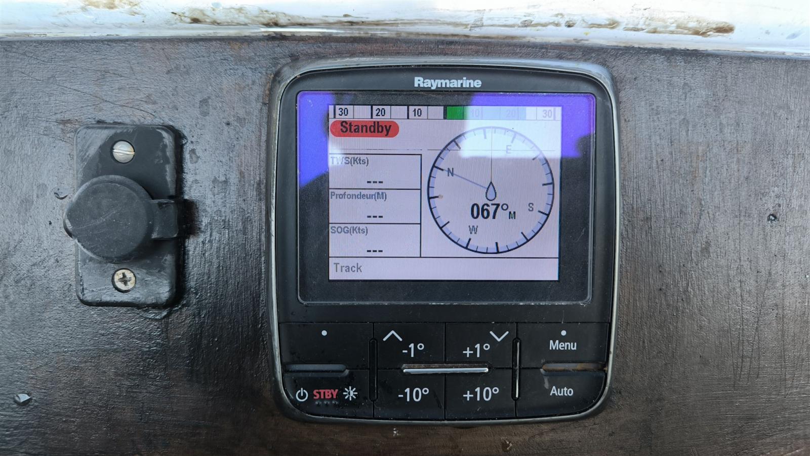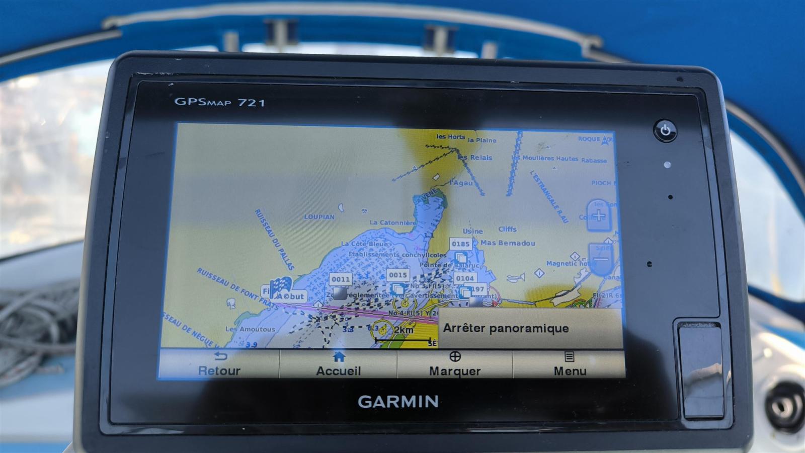 DSC vhf (NAVICOM RT550), GPS (FURUNO GP), Pilota automatico (hydraulique, + calculateur remplacé ACU400 et pupitre P70), Plotter (GARMIN GPS MAP 721), Sonar.