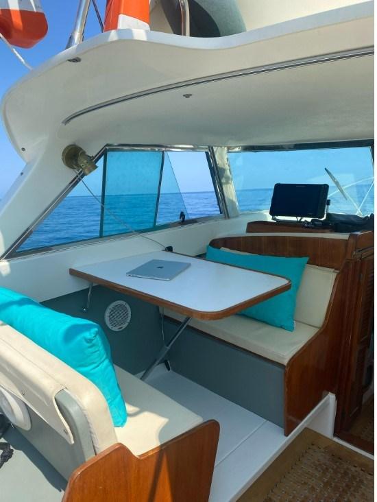 2006/2007 Lavori di riverniciatura totale dell'opera morta e sovrastruttura , eseguiti lavori di verniciatura carena e trattamento preventivo antiosmosi - Rifacimento totale del mobilio interno e tappezzerie - Impianto elettrico ricondizionato