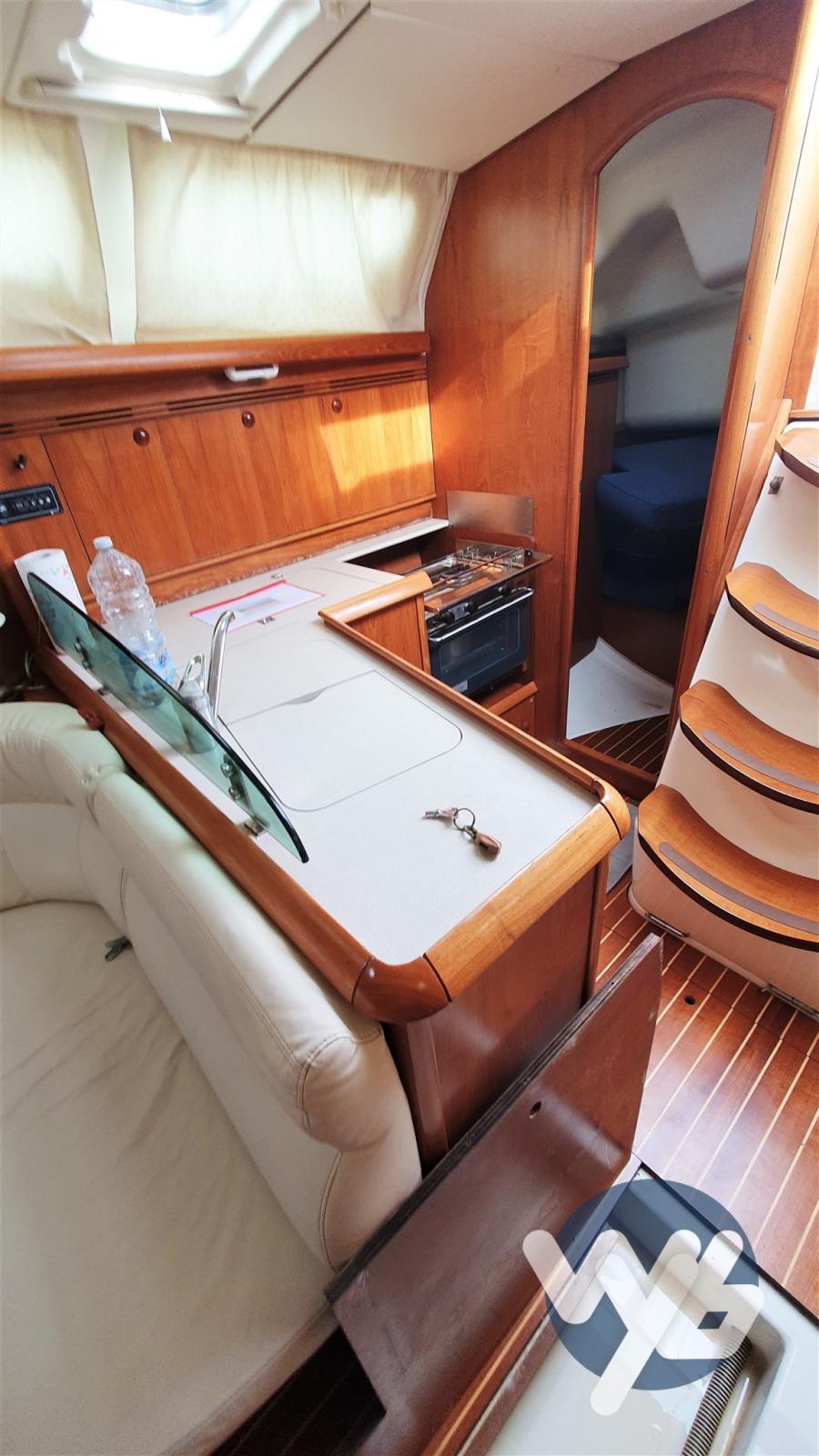 Allarme motore, Allarme sentina, Autoclave, 3 Batterie, Camminamenti laterali in teak, Colorazione speciale, Doccia esterna, Passerella, Pompa di sentina manuale, Porta ingresso, Pozzetto Teak, Presa 220V banchina, Salpa Ancore Elettrico, Scaletta da bagno, Supporto motore fuoribordo, Tender.
