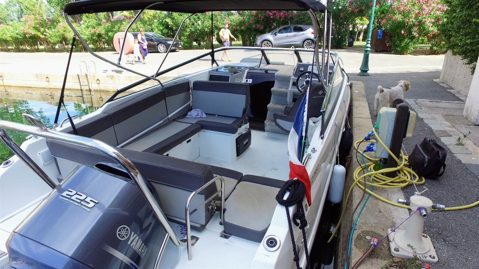 Allarme motore, Alternatore, Autoclave, 2 Batterie, Doccia esterna, 2 Flap elettrici, Gancio Traino per Sci Nautico (Arceau), 2 Piattaforma, Pompa di sentina automatica, Salpa Ancore Elettrico, Scaletta da bagno (Avec main courante), Tavolo pozzetto (teck).