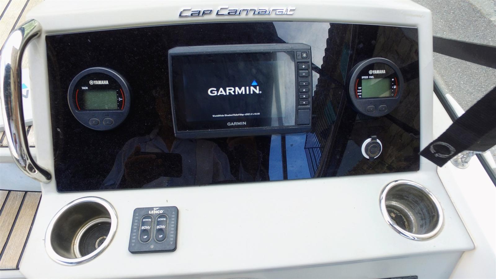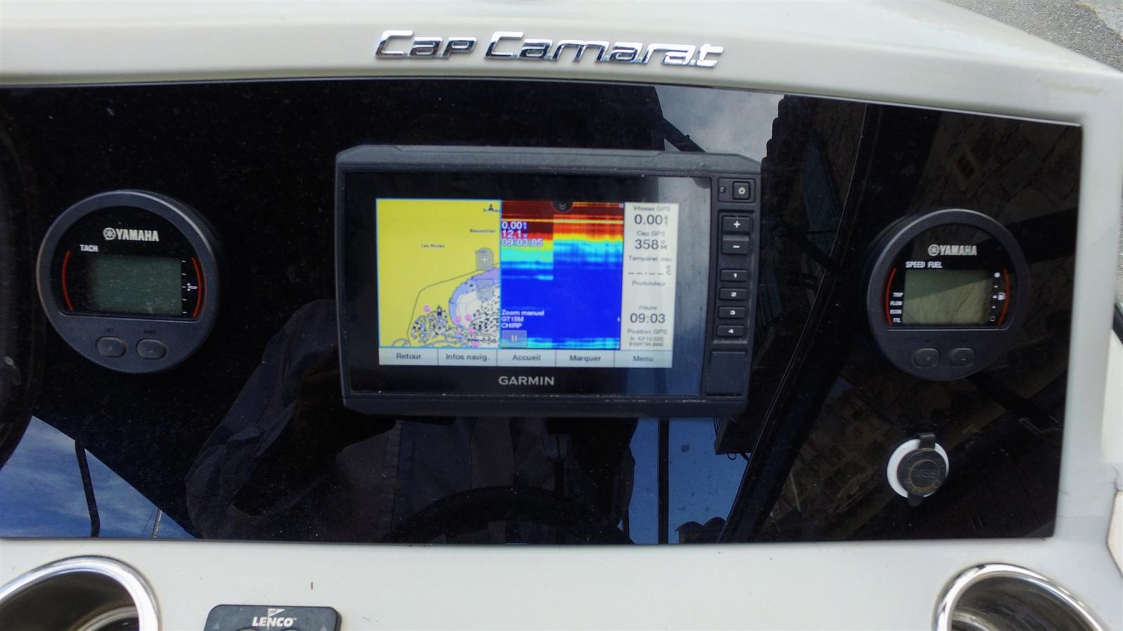 Ecoscandaglio (Garmin), Log (Yamaha), Plotter con antenna GPS (Garmin), Sonar (Garmin).