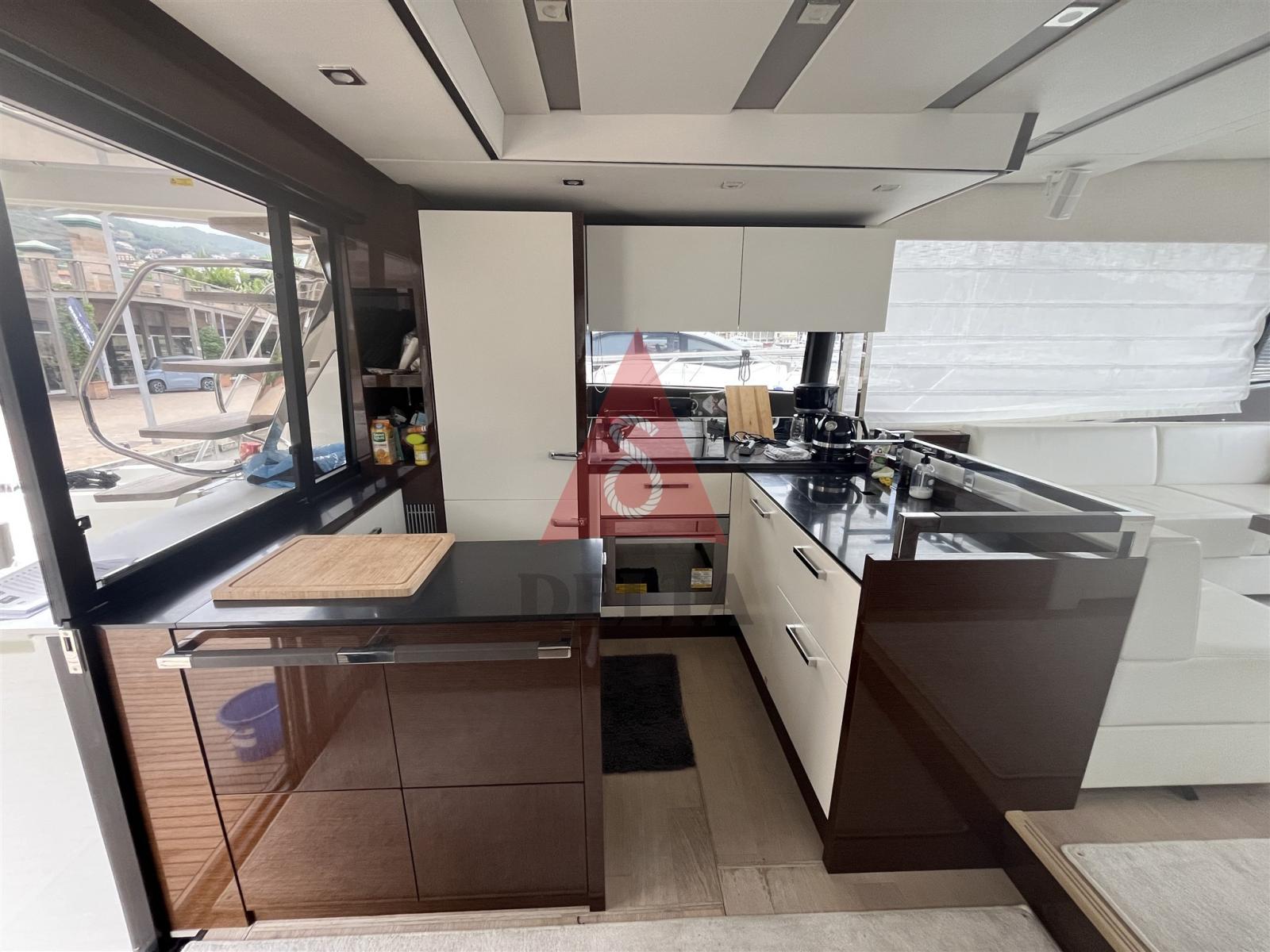 BBQ/ Grill, Boiler, Clima reversibile, Impianto acque nere, Pavimento interno in legno, Prese interne 12v, Prese interne 220v, Serbatoio Acque Nere, Telecamera, 4 WC marino elettrico.