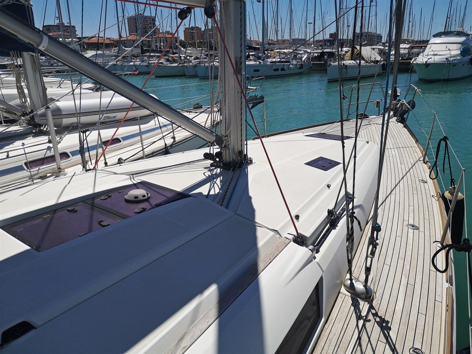 Il Sun Odyssey 439 si basa su un approccio che enfatizza la velocità, gli alloggi e una disposizione di coperta e armo a misura di marinaio.
