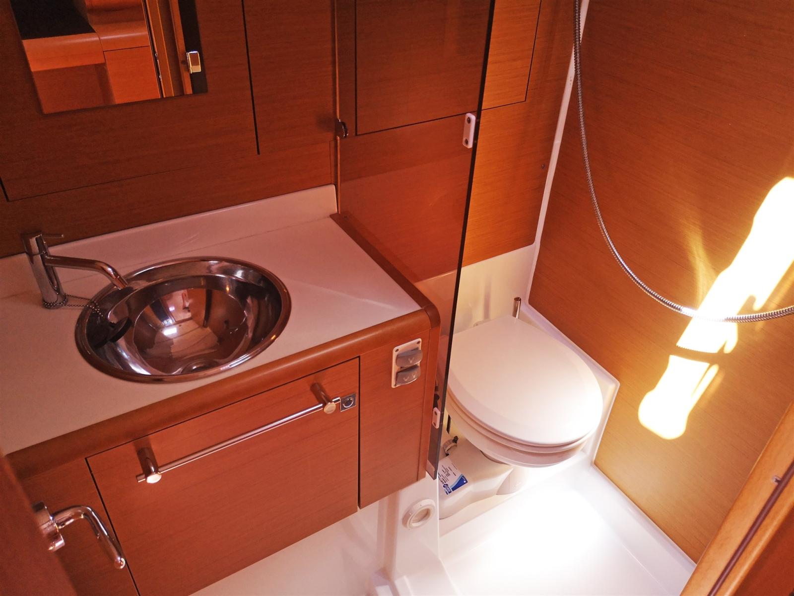 Bagno poppa lato sx completo di lavabo, wc elettrico e box doccia separato