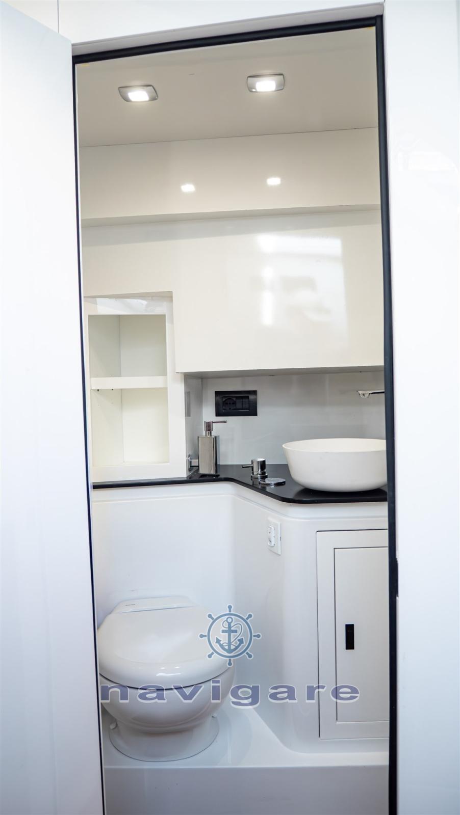 WC/BAGNO • Lavabo con rubinetto dell'acqua calda e fredda • Doccia con acqua calda/fredda* • Specchio • WC elettrico • Unità sottolavello • Presa per rasoio/asciugacapelli 230V.• Illuminazione d'atmosfera• Pompa di scarico automatica. • Oblò di coperta
