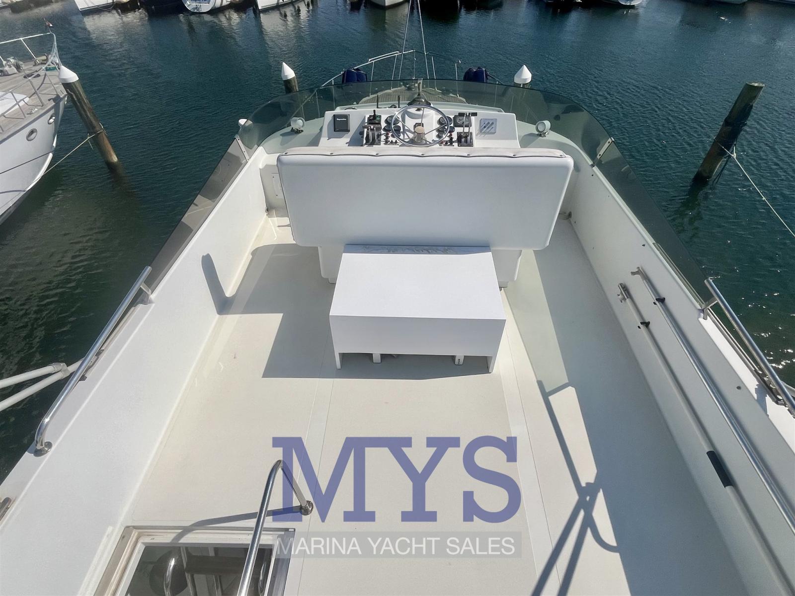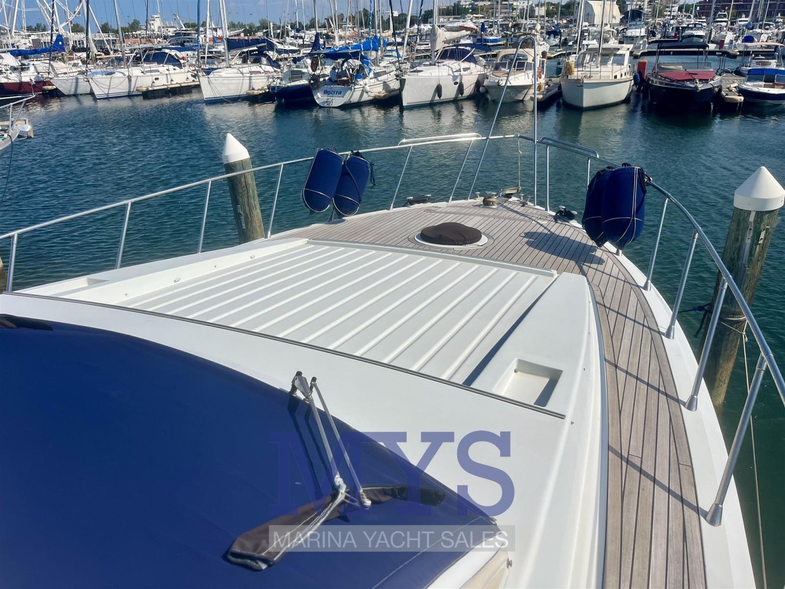Autoclave, Doccia esterna, Doppia timoneria (Interna - Fly), Flap idraulici, Indicatori Flaps, Luci di cortesia, Parabordi, Passerella (Idraulica), Piattaforma, Pompa di sentina manuale, Ponte in teak, Pozzetto Teak, Presa 220V banchina, Presa acqua banchina, Salpa Ancore Elettrico, Scaletta da bagno, 2 Winch tonneggio di poppa.