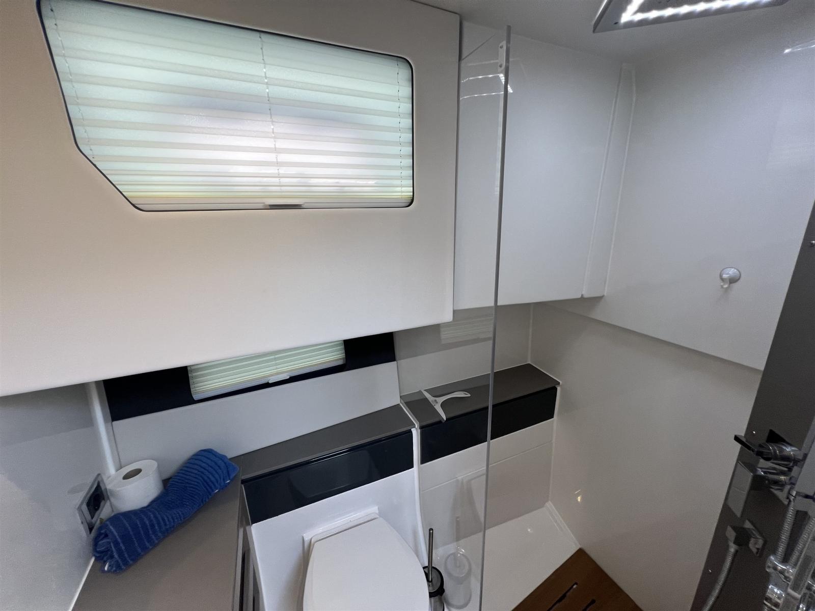 Boiler, Pavimento interno in legno (Pale Acacia), Prese interne 12v, Prese interne 220v, Serbatoio Acque Nere, WC marino elettrico.