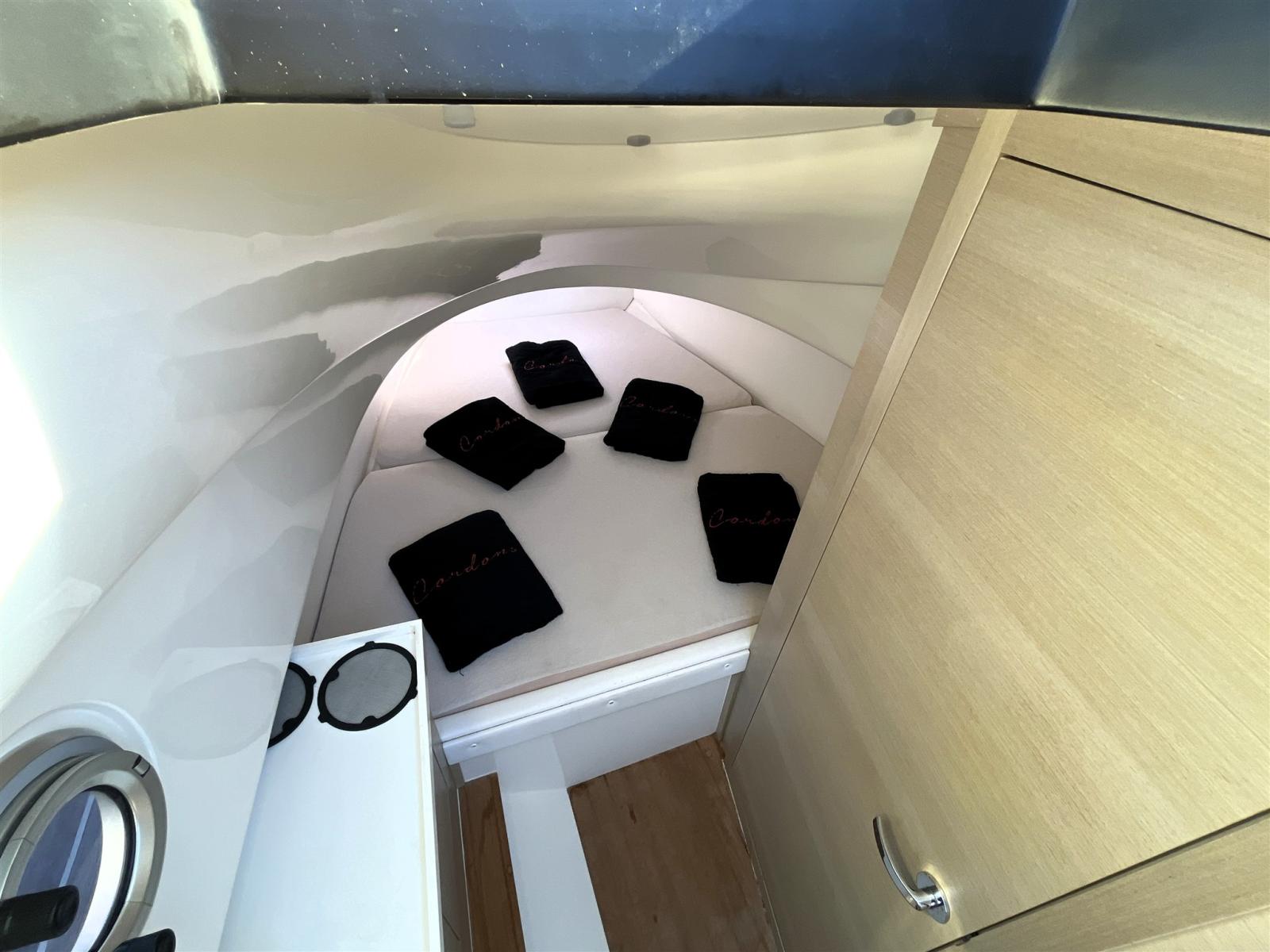 Acqua Calda, Boiler, Impianto acque nere, Indicatore del Serbatoio dell’Acqua, Indicatore del Serbatoio delle Acque Reflue, Prese interne 12v, Prese interne 220v, Serbatoio Acque Nere, Sistema Idrico, Telecamera (VANO ANCORA), WC marino elettrico.