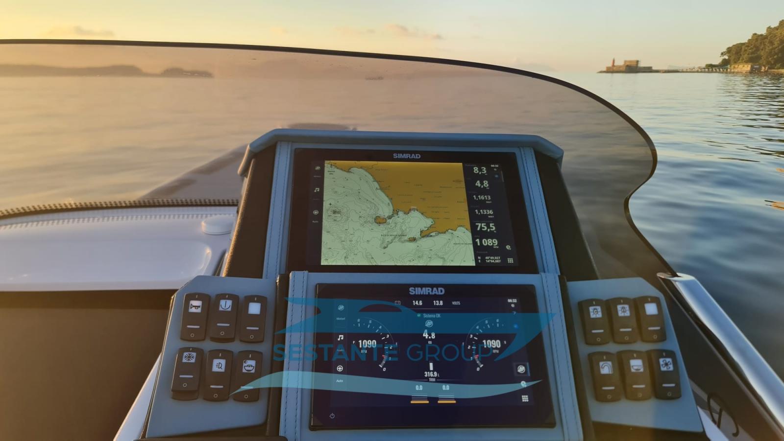 Contametri catena (Quick QNC CHC), Display (Simrad NSX3009), GPS (Simrad NSX3012), Mappe e guide, Monitor dei consumi, Sedile Copilota.