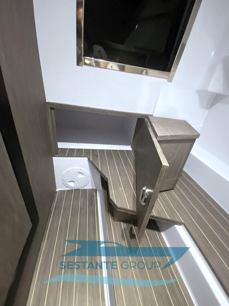 Impianto acque nere, Indicatore del Serbatoio dell’Acqua, Indicatore del Serbatoio delle Acque Reflue, Pavimento interno in legno, Prese interne 12v, Prese interne 220v, Serbatoio Acque Nere, WC marino elettrico.