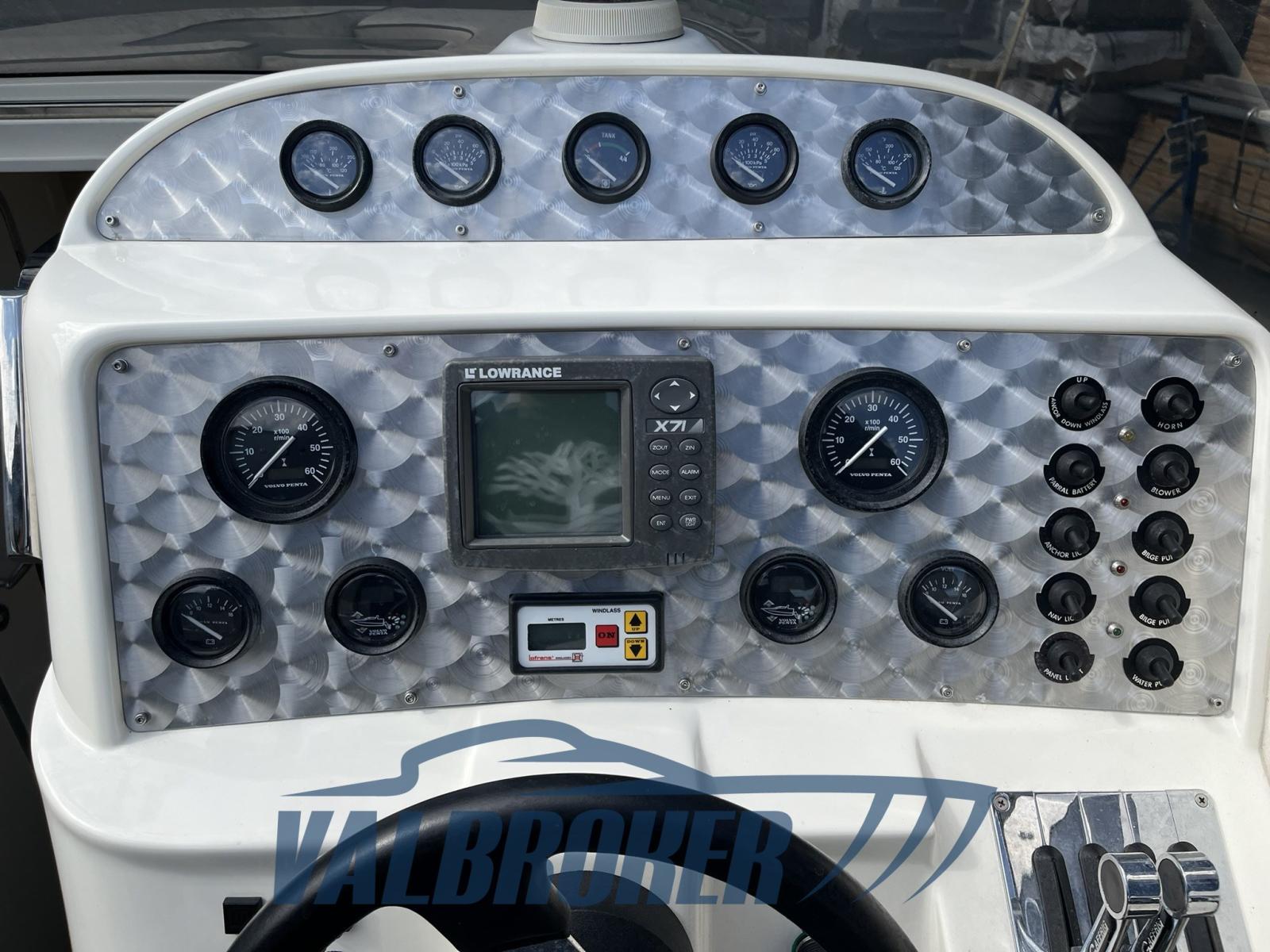 Elegante offshore con grande abitabilità. Motorizzato 2x375 Volvo Penta 8.0 benzina con solo 300 ore di moto. Rimessata in capannone al coperto, usata solo lago.