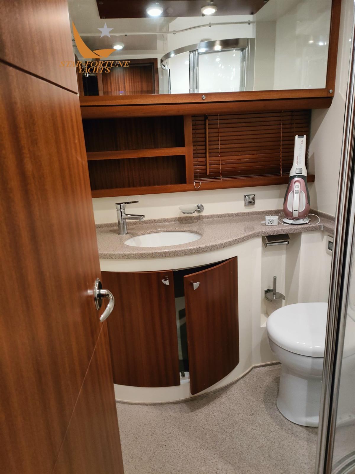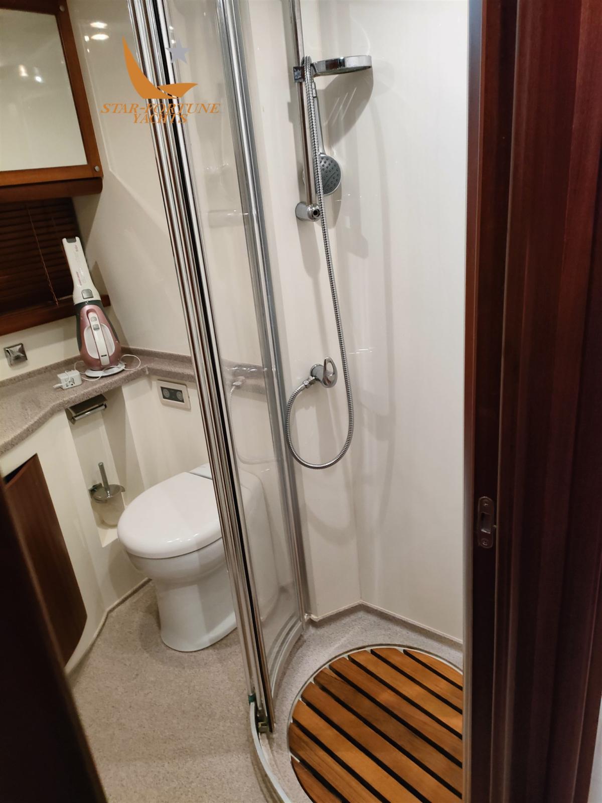 Cabina matrmoniale armatoriale a prua con lavabo, wc eletrrico e box doccia dedicato