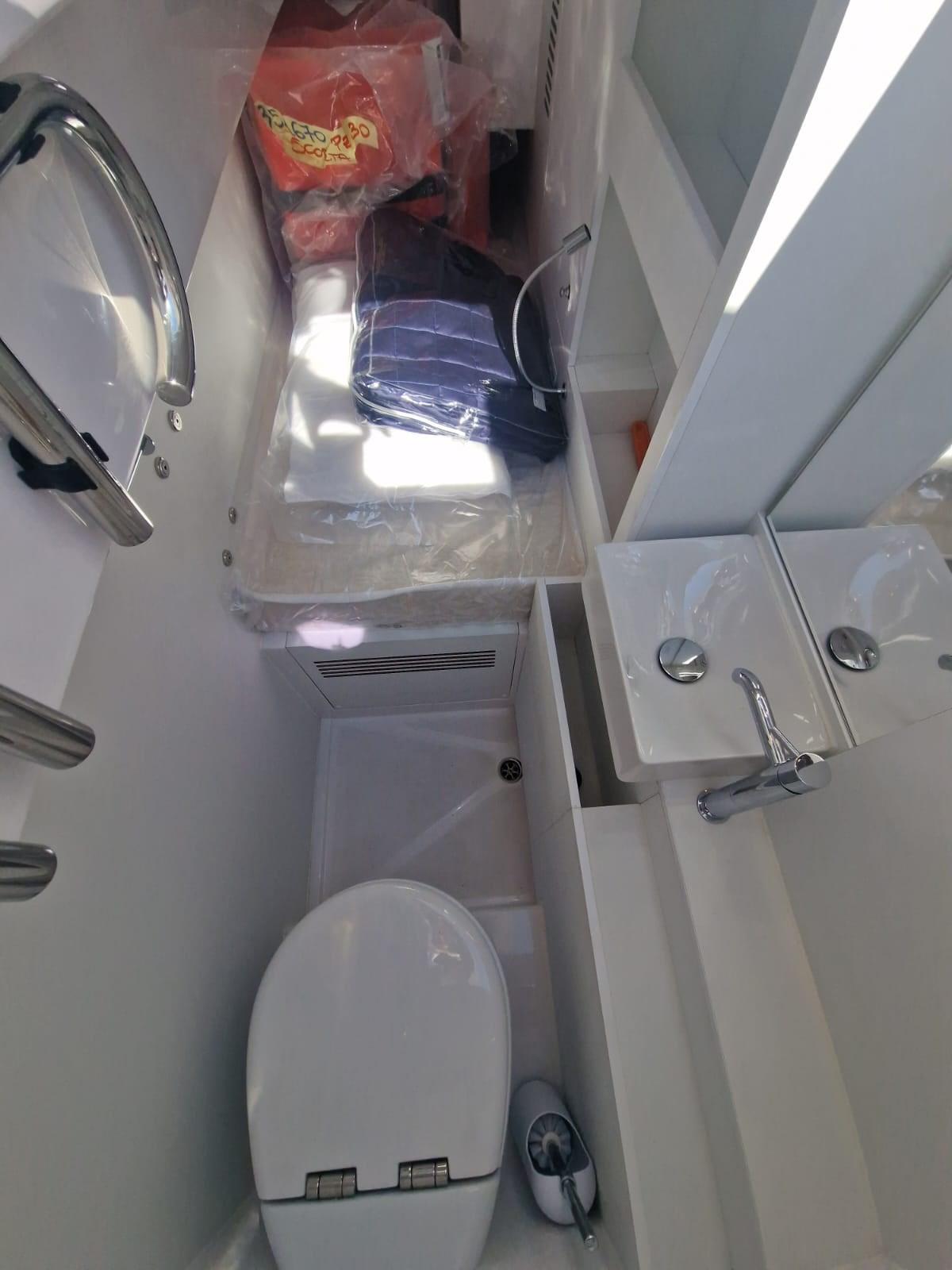 Aria condizionata (Air conditioning tropical (saloon + cabins + crew)), Boiler, Inverter (Inverter 2500 W/220 V/24 V), WC marino elettrico.