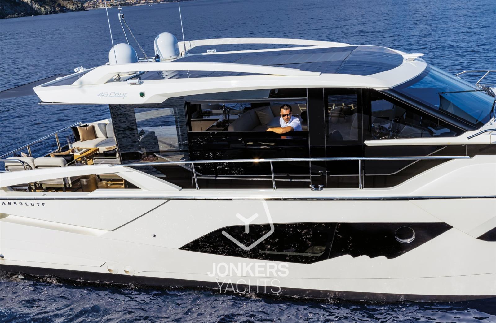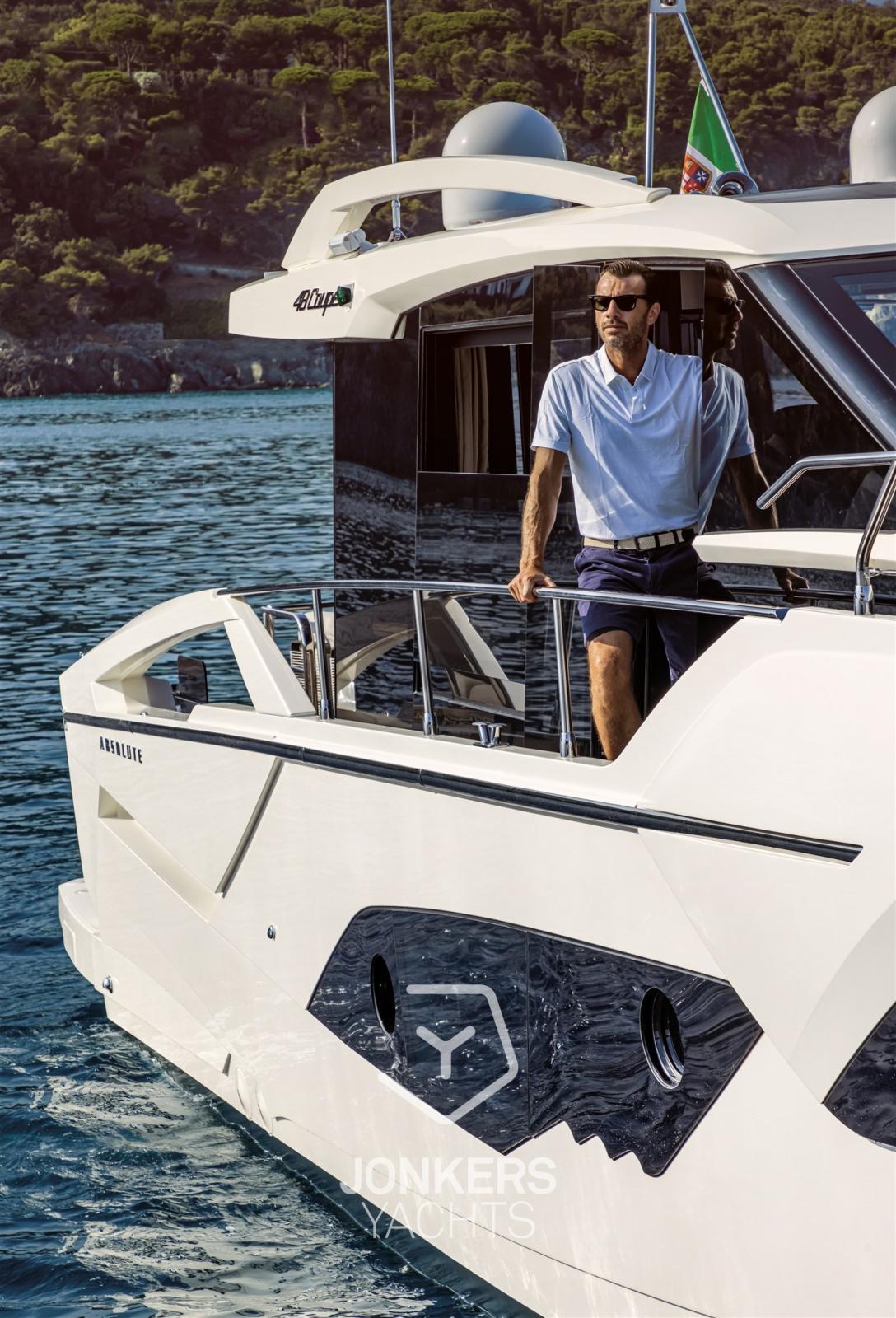 Linee sportive per un layout votato al comfort e altamente versatile: Absolute 48 Coupé si distingue per lo stile audace, l'alto livello di fruibilità e un forte impegno per la sostenibilità.