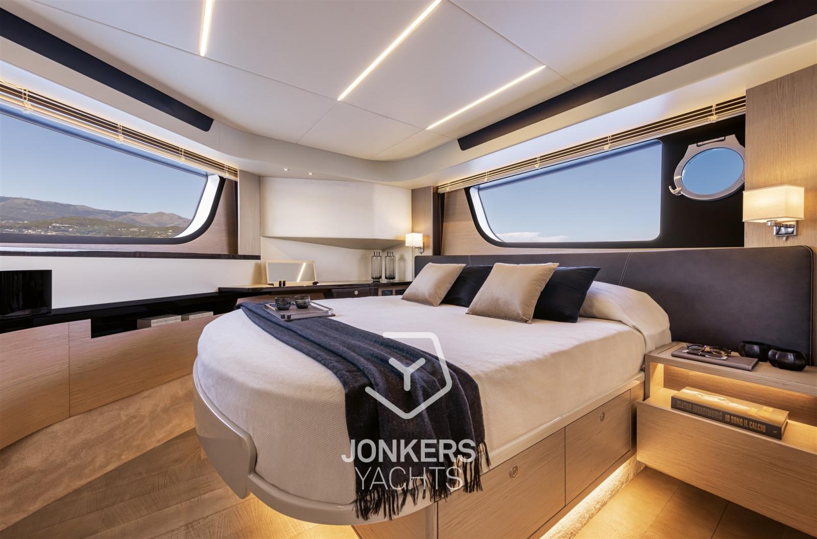 Nel salone, le ampie vetrate laterali avvolgono l'intero ponte e, insieme al parabrezza panoramico, offrono una visibilità ininterrotta. Dall'interno, la vista mozzafiato si trasforma in un vero e proprio panorama a 360 gradi. Inoltre, le finestre possono essere aperte elettricamente, lasciando entrare la brezza marina e creando un piacevole e naturale ricircolo dell'aria.
