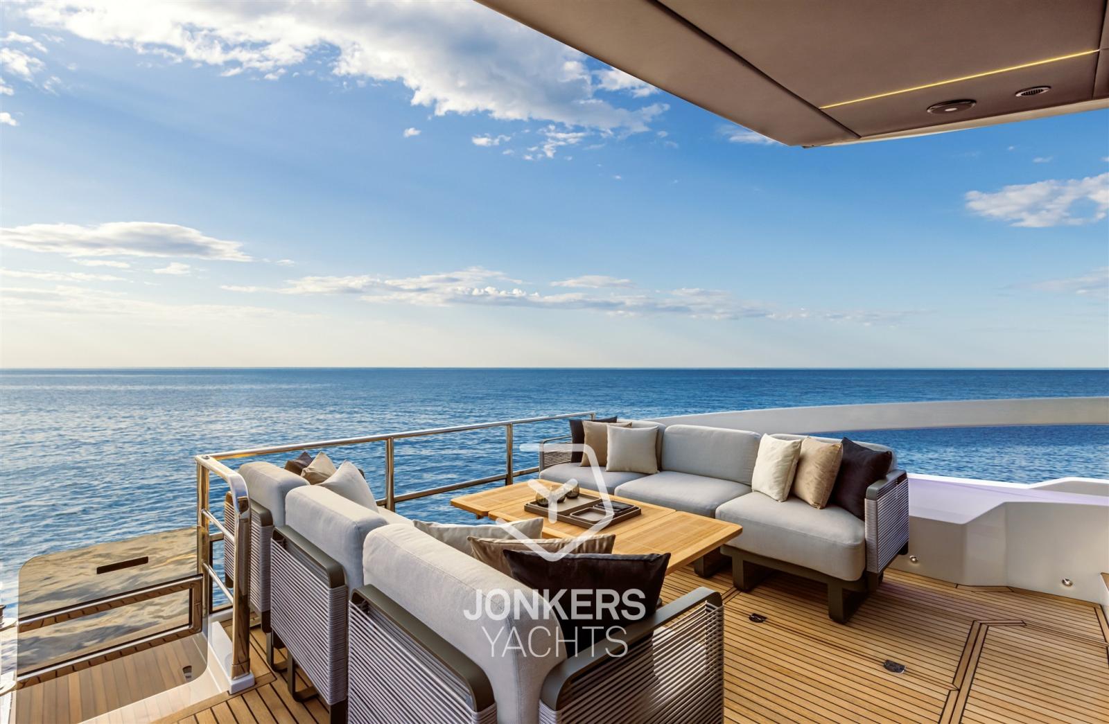 Il pozzetto è ampio ed estremamente raccolto, privo di barriere visive o ostacoli fissi e quindi il suo spazio può essere adattato a molteplici configurazioni. L'apertura delle falchette laterali offre una vista diretta sul mare e le nuove balaustre vetrate verso poppa regalano uno scenario senza eguali, anche dal salone e dalla plancia di comando. Gli arredi da esterno possono essere facilmente disposti in diverse configurazioni, adattandosi alle diverse esigenze di bordo: perfetti sia per il massimo relax che per intriganti conversazioni.