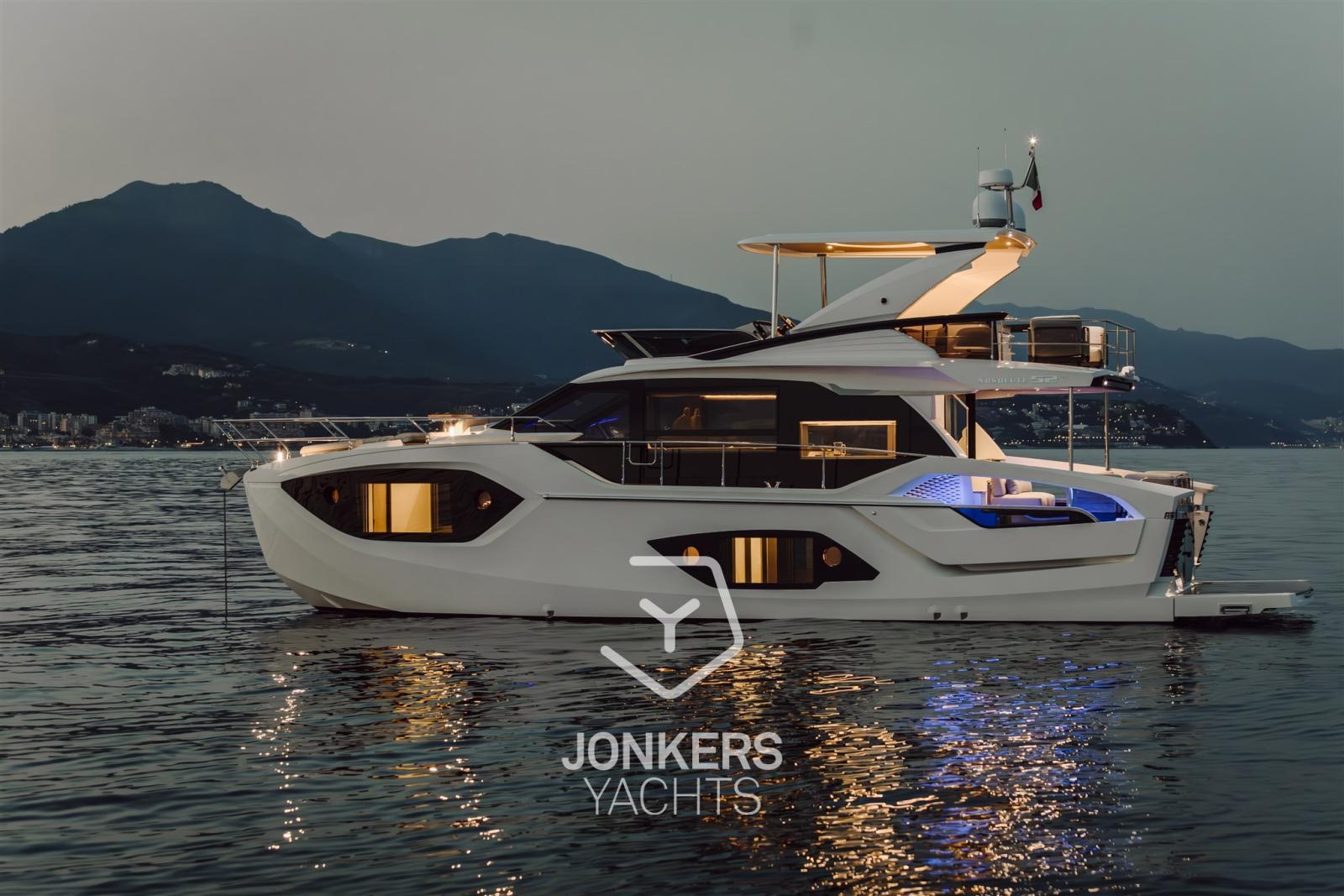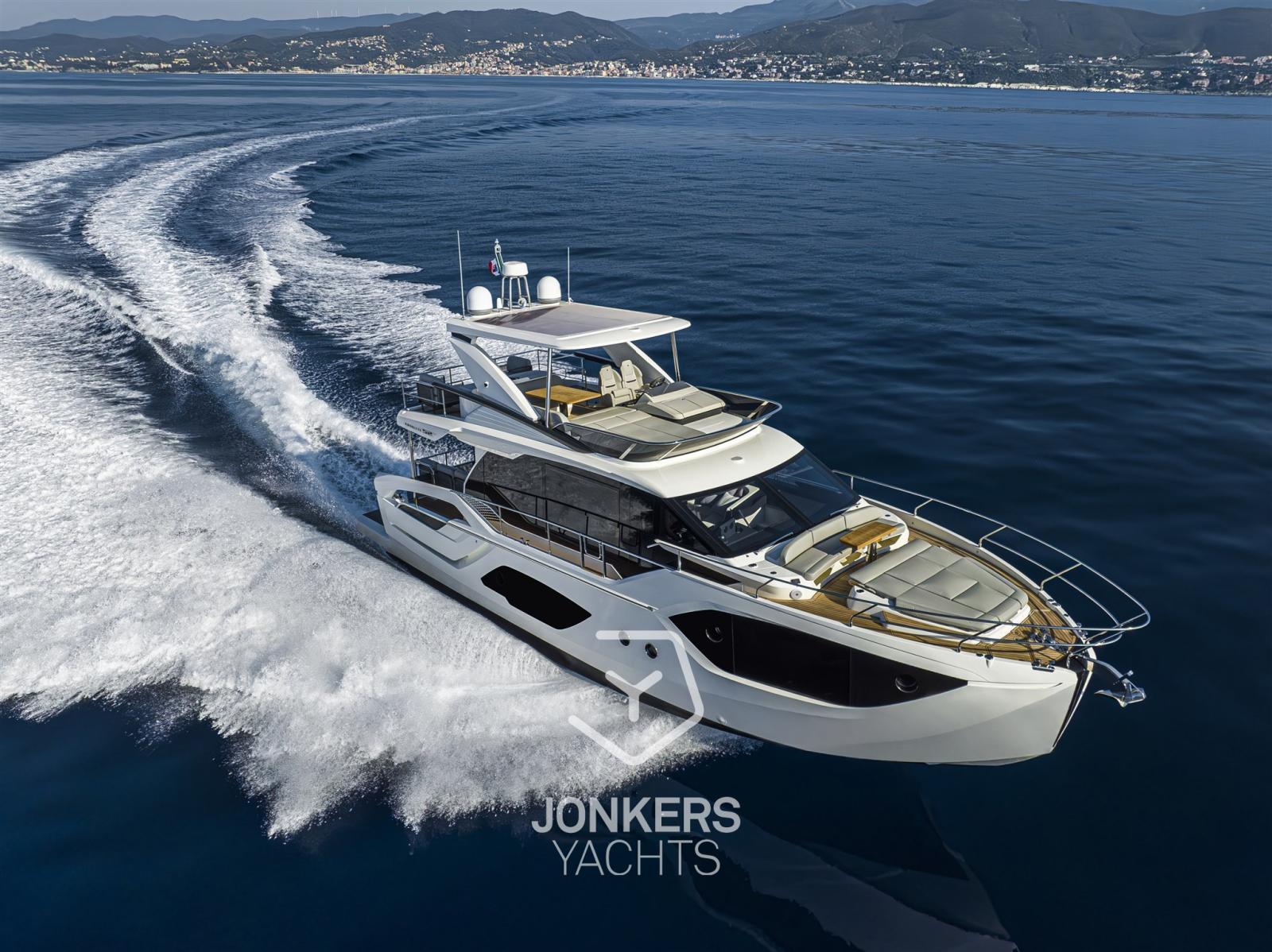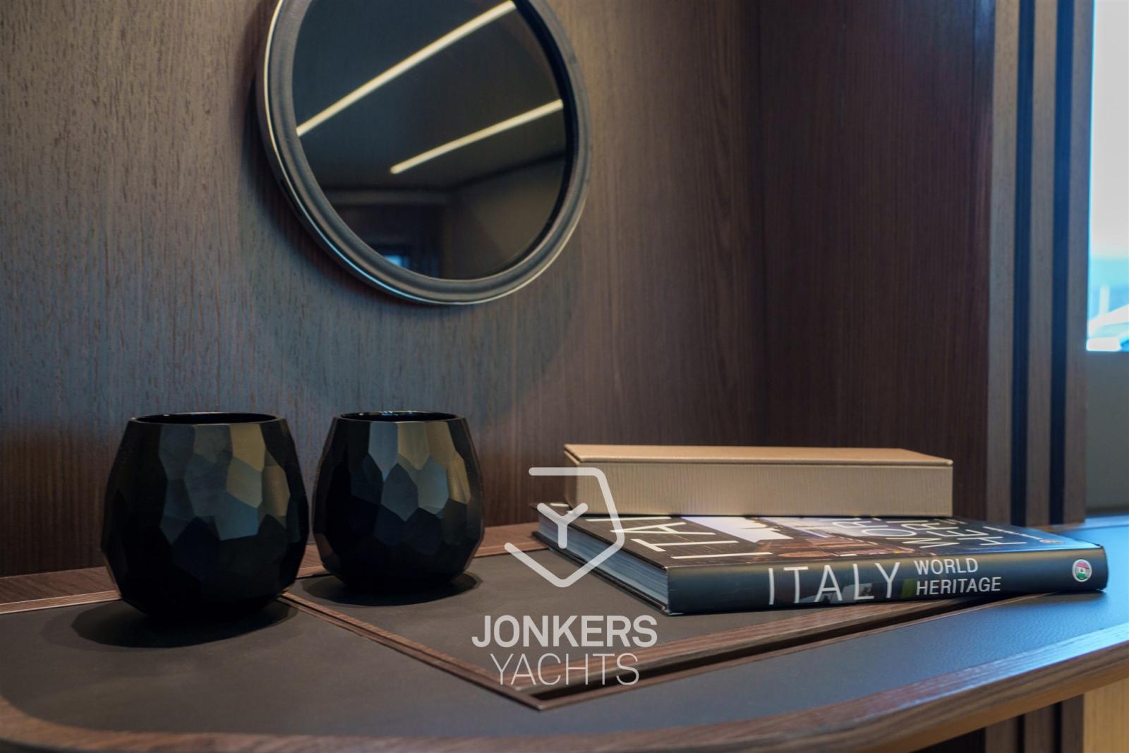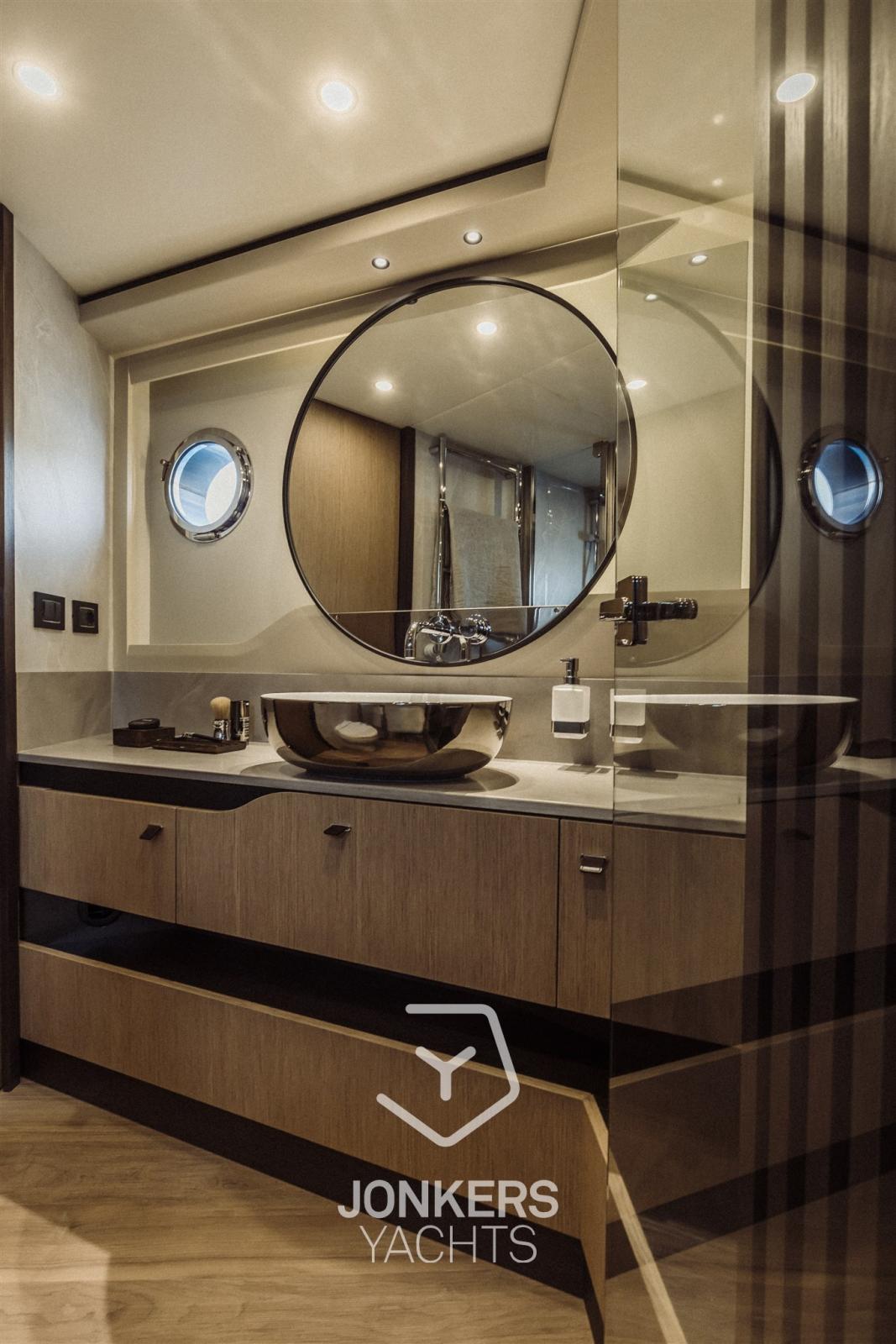 L'uso di ampie vetrate, un marchio di fabbrica familiare di Absolute, è particolarmente visibile nel salone, da cui si gode di una fantastica vista a 360 gradi. Oltre all'aria condizionata, la ventilazione naturale può essere fornita dalle finestre scorrevoli verticalmente comandate elettricamente. La cucina è completamente attrezzata e, cosa insolita per barche di queste dimensioni, c'è anche una spaziosa dispensa.