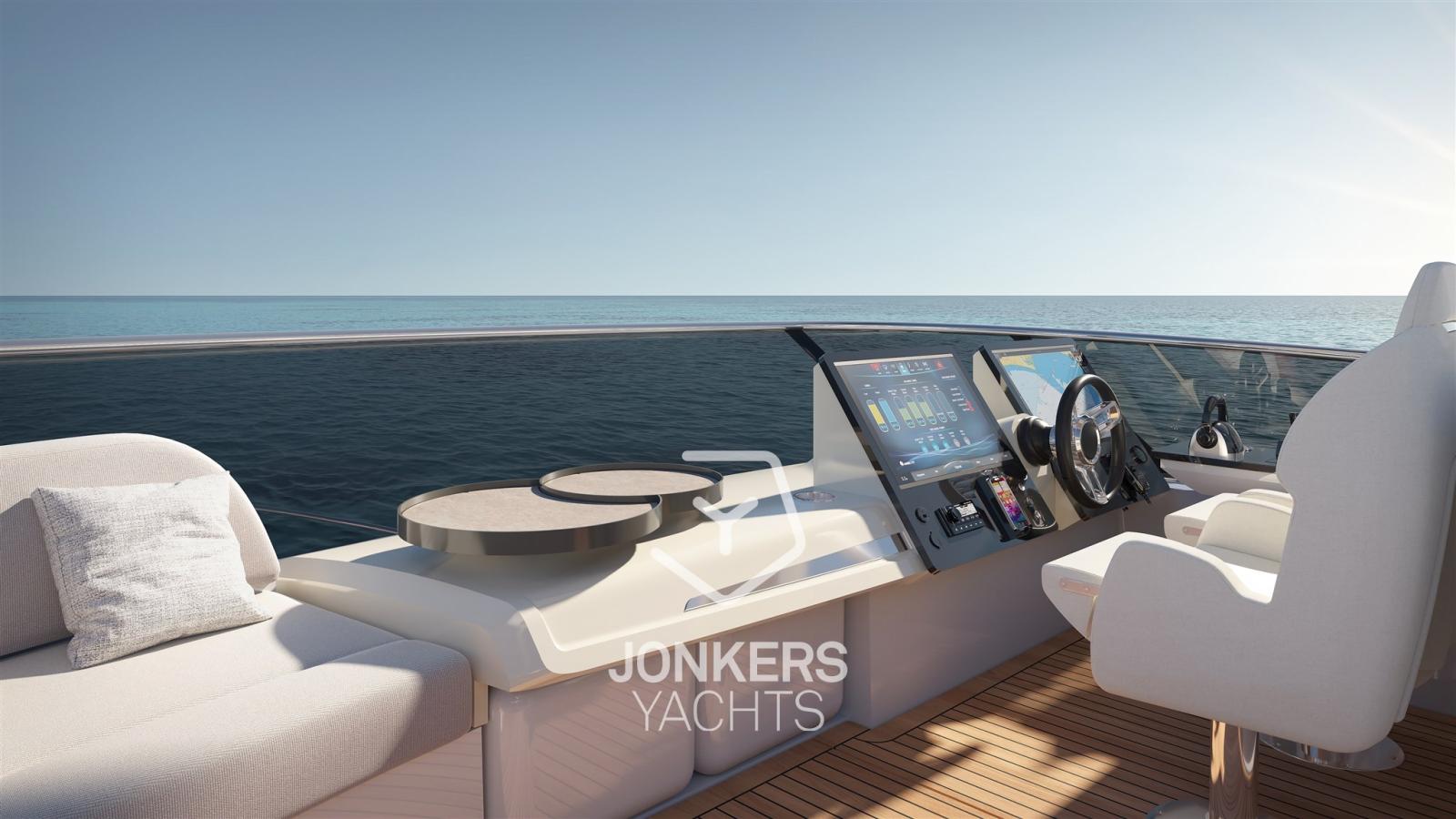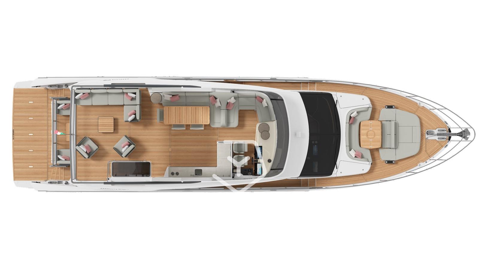 La zona di poppa, caratterizzata da un'innovativa piattaforma scorrevole, facilita l'accesso diretto al mare introducendo anche un livello di eleganza superiore, con luci soffuse e spazi dedicati al relax e all'intrattenimento. Il flybridge, privo di gradini e dotato di comodi arredi modulari e di un'ampia zona pranzo all'aperto, si trasforma in un'esclusiva terrazza da cui ammirare il panorama circostante, immergendosi in un'atmosfera di completa serenità. Immagina di goderti un cocktail al tramonto, accompagnato dal suono rilassante delle onde e dalla vista del sole che tramonta lentamente all'orizzonte, creando momenti indimenticabili a bordo.