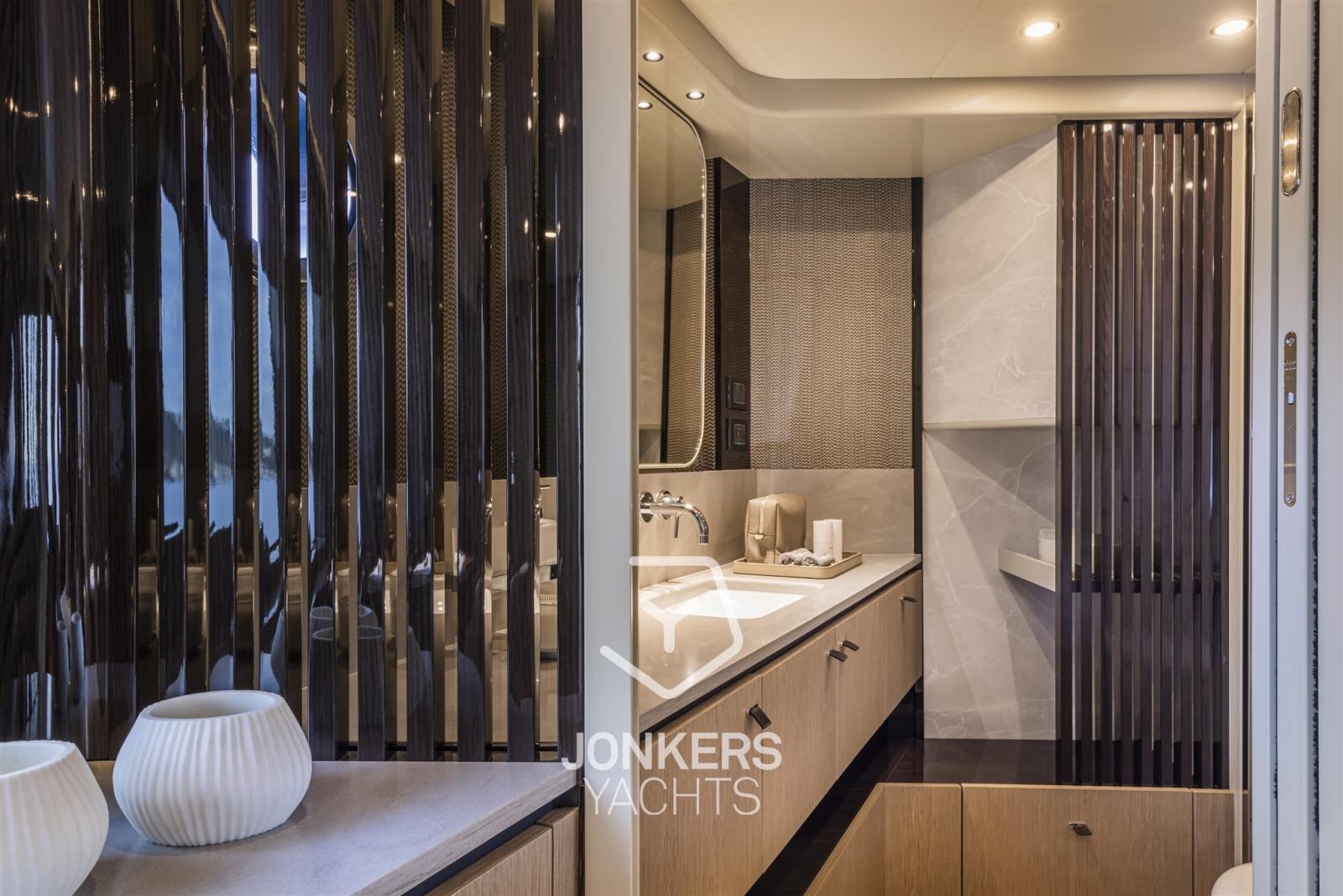 La zona notte offrirà molto spazio per dormire in tutta comodità. La cabina armatoriale a tutto baglio a prua è progettata per garantire privacy e comodità, oltre a una vista eccezionale attraverso ampie finestre. I suoi interni moderni sono impreziositi da elementi sofisticati, dettagli trasparenti tra cabina e bagno e contrasti materici. Spaziosa come la cabina di un secondo armatore, anche la cabina VIP è a tutto baglio. Una comoda terza cabina con letti singoli e una cabina doppia per l'equipaggio completano la zona notte. Senza gradini interni, tutte le cabine del ponte inferiore sfruttano al massimo le altezze e i volumi, con vetrate sorprendentemente grandi per una vista mattutina senza pari, con molta luce naturale che inonda.