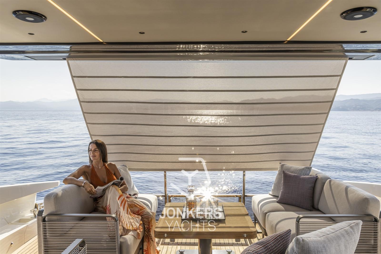 Con un'attenzione particolare alla versatilità, allo spazio abitativo e alla sostenibilità ambientale, 56 FLY continua con orgoglio la rivoluzione iniziata con la gamma Flybridge Generation 2022. I pannelli solari integrati nell'hard top diventano una risorsa preziosa per garantire un comfort superiore quando ci si ferma nella propria caletta preferita, riducendo rumore, vibrazioni, emissioni e consumi, e garantendo una maggiore autonomia con un generatore diesel.