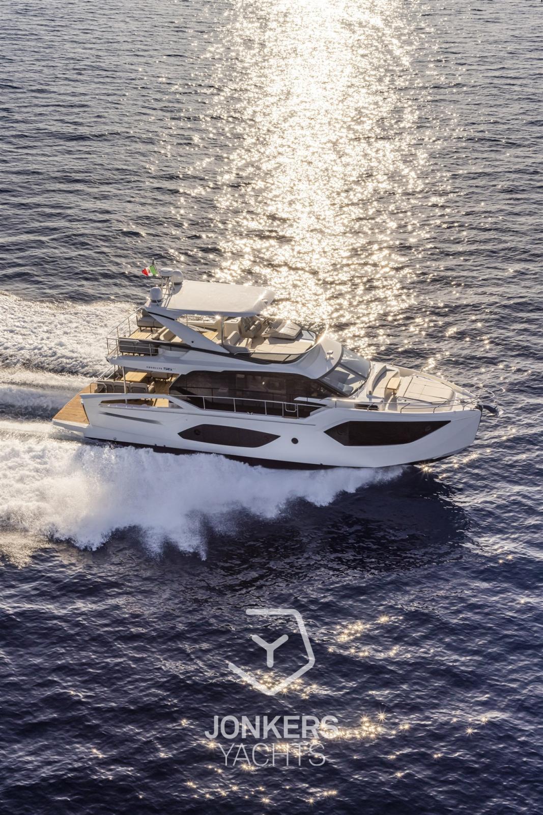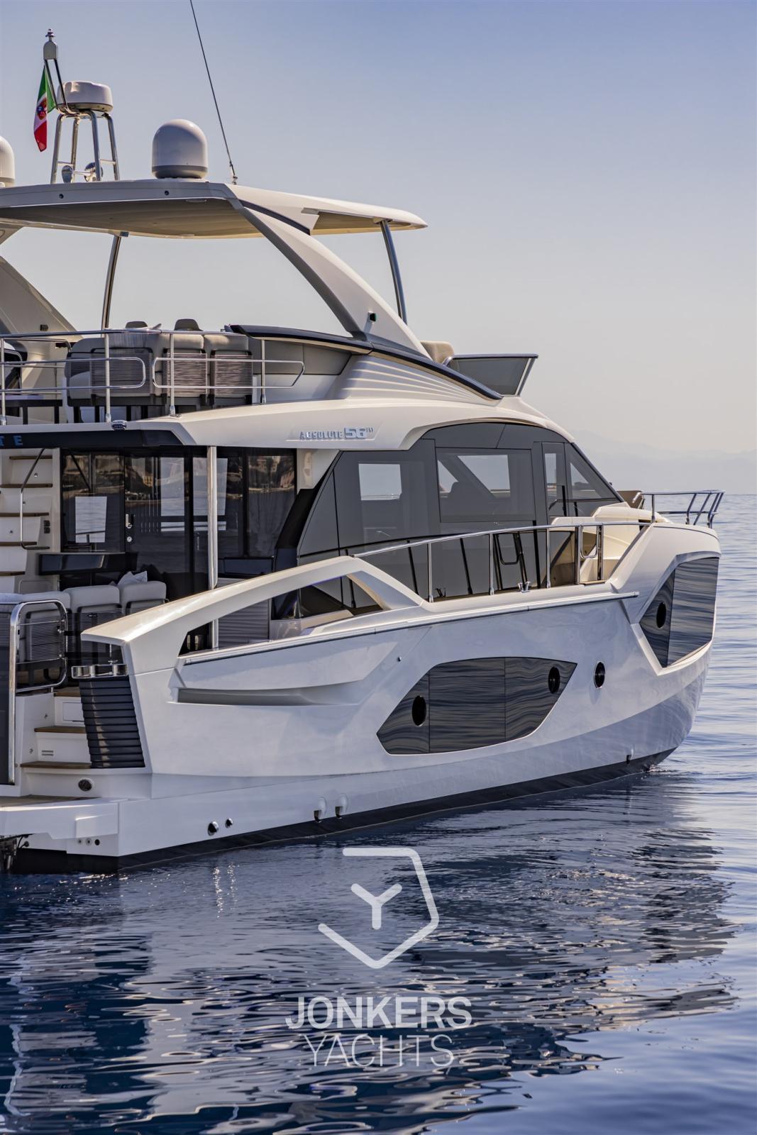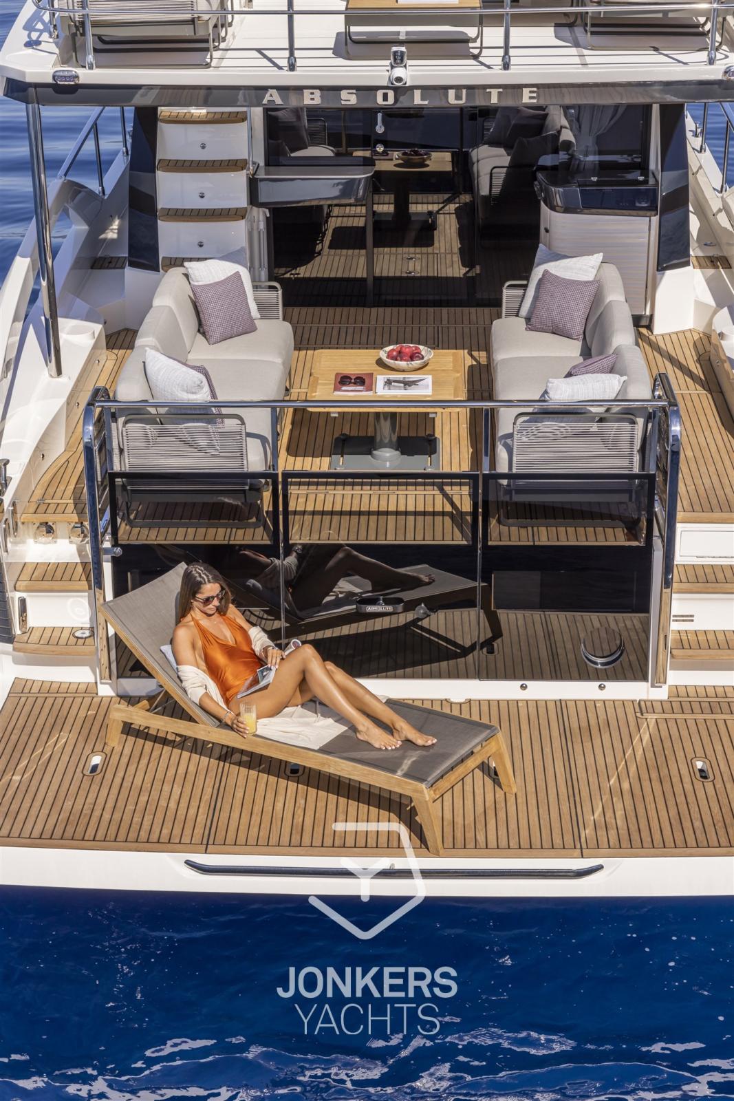 La forte personalità di Absolute 56 FLY si esprime nelle sue linee d'impatto così come negli interni, caratterizzati da spazi confortevoli, raffinati e di grande praticità.