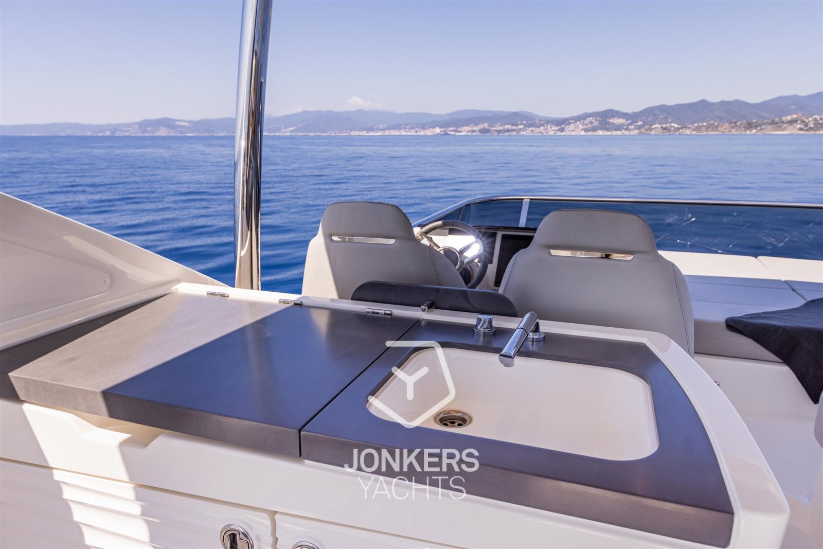 Goditi un comodo prendisole fronte mare e un divano a prua per una rilassante giornata in mare, o come un tranquillo flybridge, proprio come sulle barche più grandi. Il pozzetto è capiente e privo di elementi fissi, quindi può essere allestito con arredi modulari in base al proprio gusto e alle proprie esigenze.