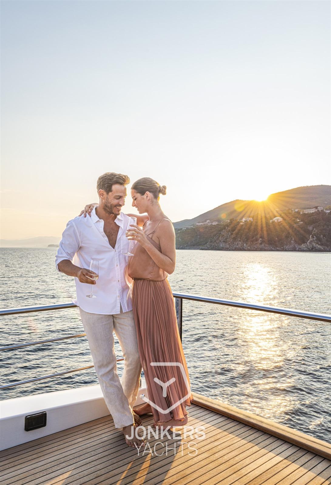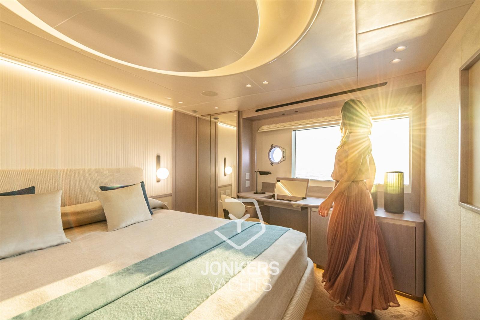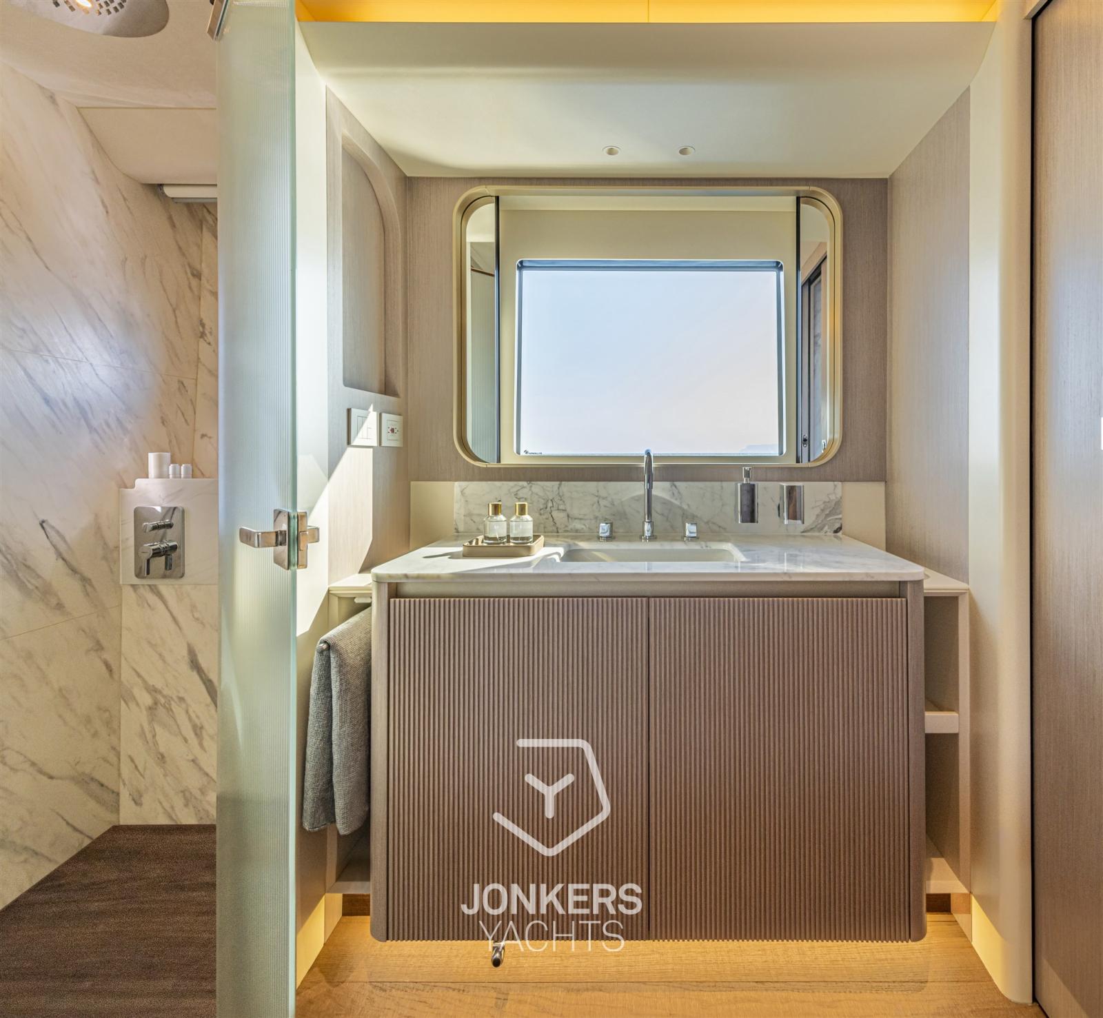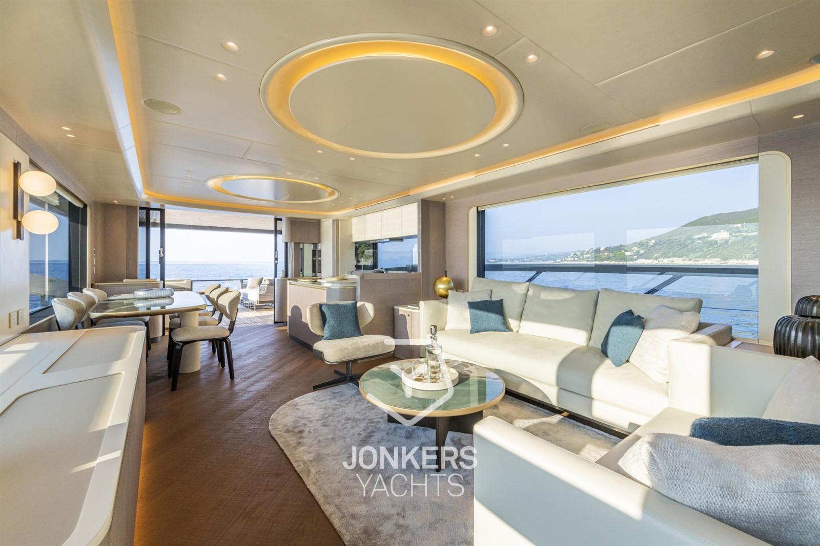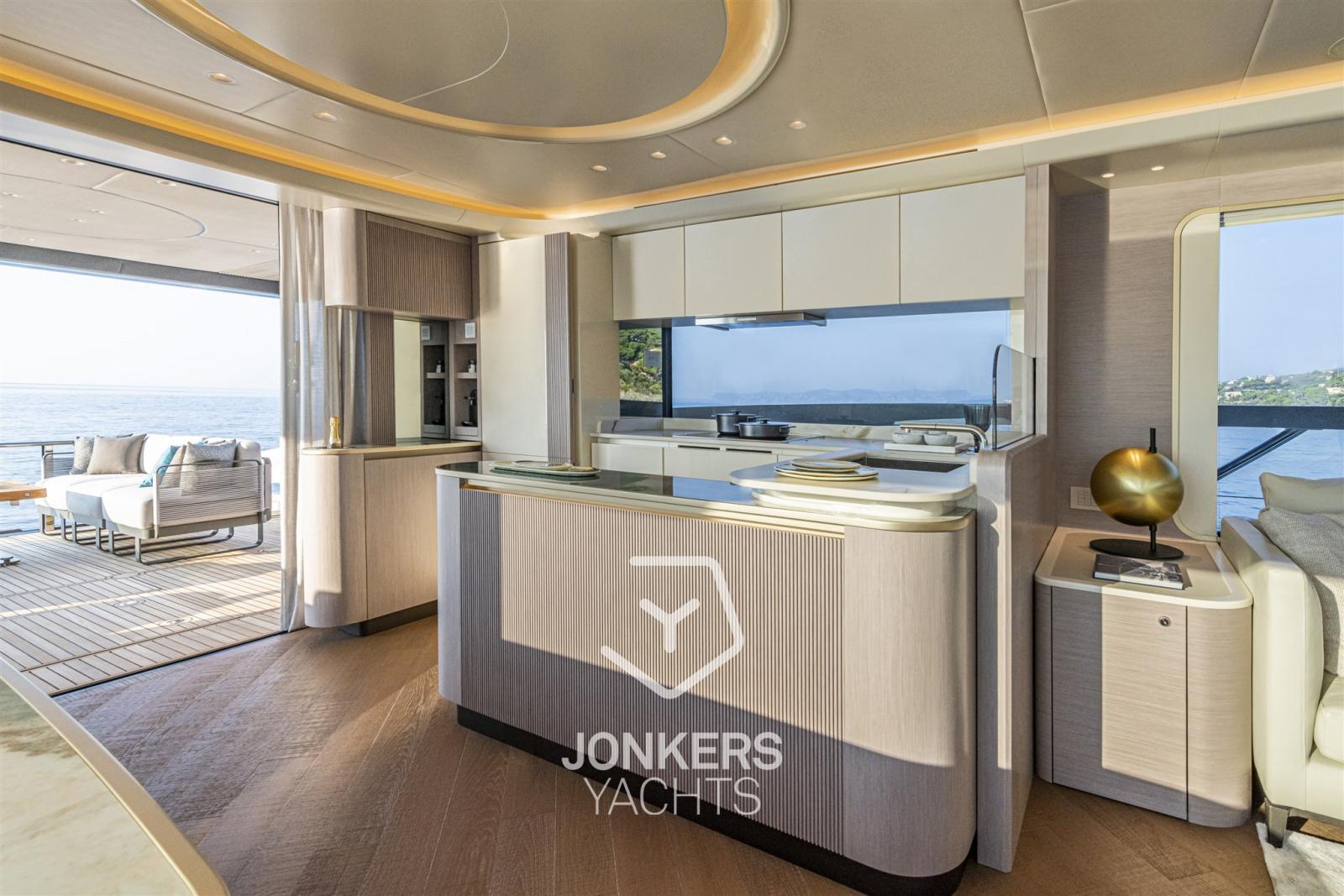 Questo yacht è stato inoltre progettato per godere di una vista a 360 gradi sul mare a bordo, con la percezione di trovarsi su un'imbarcazione dai volumi molto più grandi. La spaziosa cucina e l'ampio soggiorno contribuiscono ulteriormente all'impressione di spazi ancora più generosi.