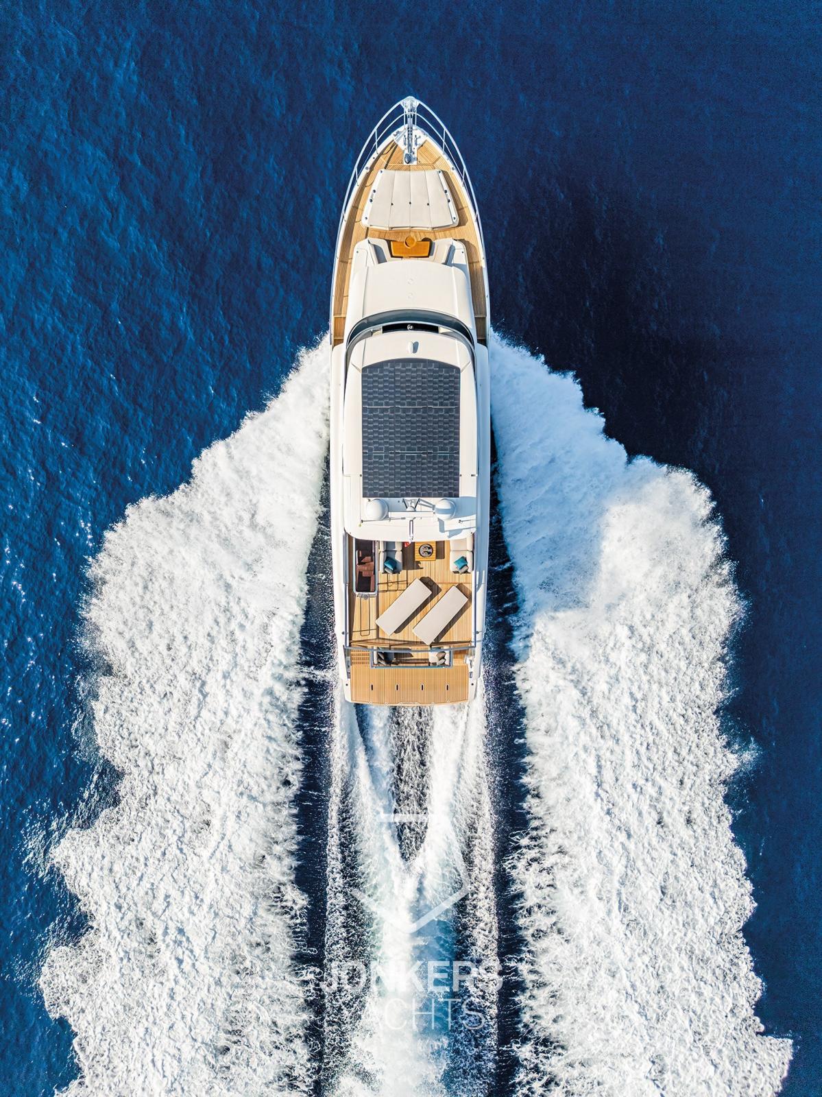 Gli spazi esterni di questo yacht sono contraddistinti da linee dinamiche e accattivanti, caratterizzati da un flybridge spazioso e ridisegnato e da un comodo pozzetto a terrazza.