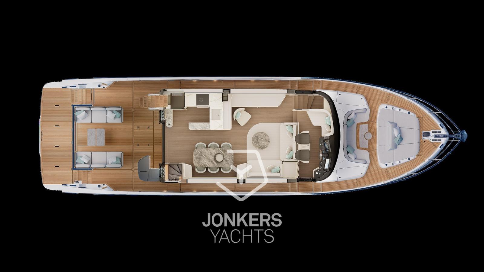 Navetta 66 ridefinisce il modo di connettersi con il mare, offrendo una ricchezza di spazi pensati per celebrare l'outdoor in tutte le sue forme. L'ampio flybridge è un vero e proprio rifugio per tutto il giorno, che combina perfettamente timonerie, ristoranti e zone relax. Gli arredi modulari consentono una riconfigurazione senza sforzo, adattandosi ad ogni momento a bordo. Sul ponte principale, un dialogo visivo ininterrotto con l'acqua è creato attraverso vetrate trasparenti a falchetta, che aumentano la sensazione di apertura ed elevano il fascino esterno dello yacht. Il ponte di prua è un'oasi di comfort, completamente attrezzata per il relax, mentre la terrazza del pozzetto è arricchita da un nuovo tendalino per la privacy per un divertimento sereno e riparato.