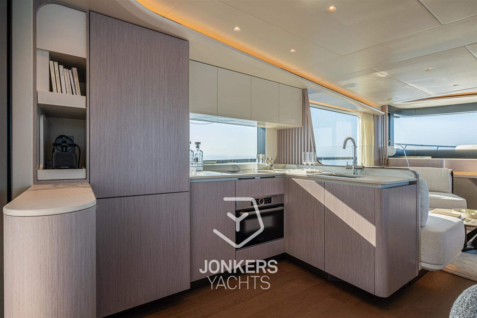 All'interno di Navetta 62, lusso e raffinatezza si fondono in uno spazio accogliente e luminoso, dove ogni dettaglio è stato studiato con cura per migliorare l'esperienza a bordo. Gli arredi di alta qualità sono completati da finiture eleganti, creando un'atmosfera raffinata ma accogliente. Particolare attenzione è stata data alle nuove tende plissettate dal pavimento al soffitto, che elevano l'eleganza degli interni e aggiungono un senso di spaziosità e leggerezza. La cucina a vista, dotata di elettrodomestici moderni e di un piano cottura con cappa aspirante integrata, offre un perfetto connubio tra funzionalità e stile, confluendo senza soluzione di continuità in una zona living pensata per momenti di pura convivialità.