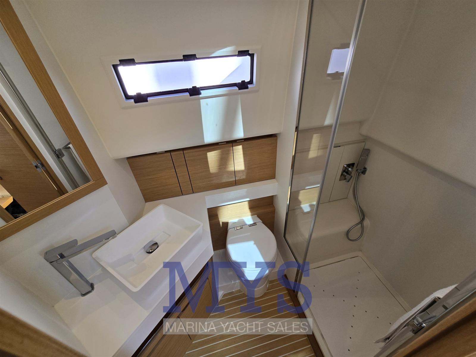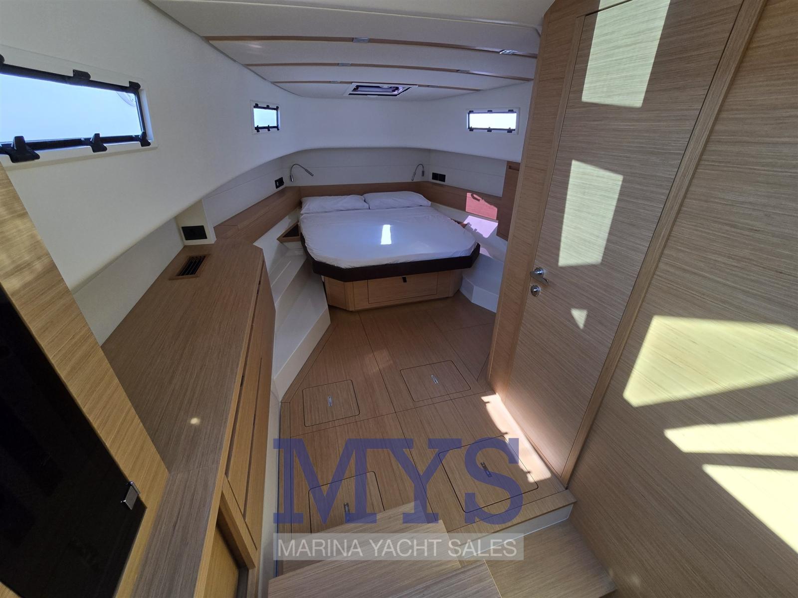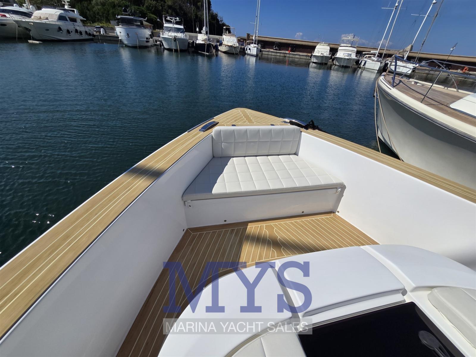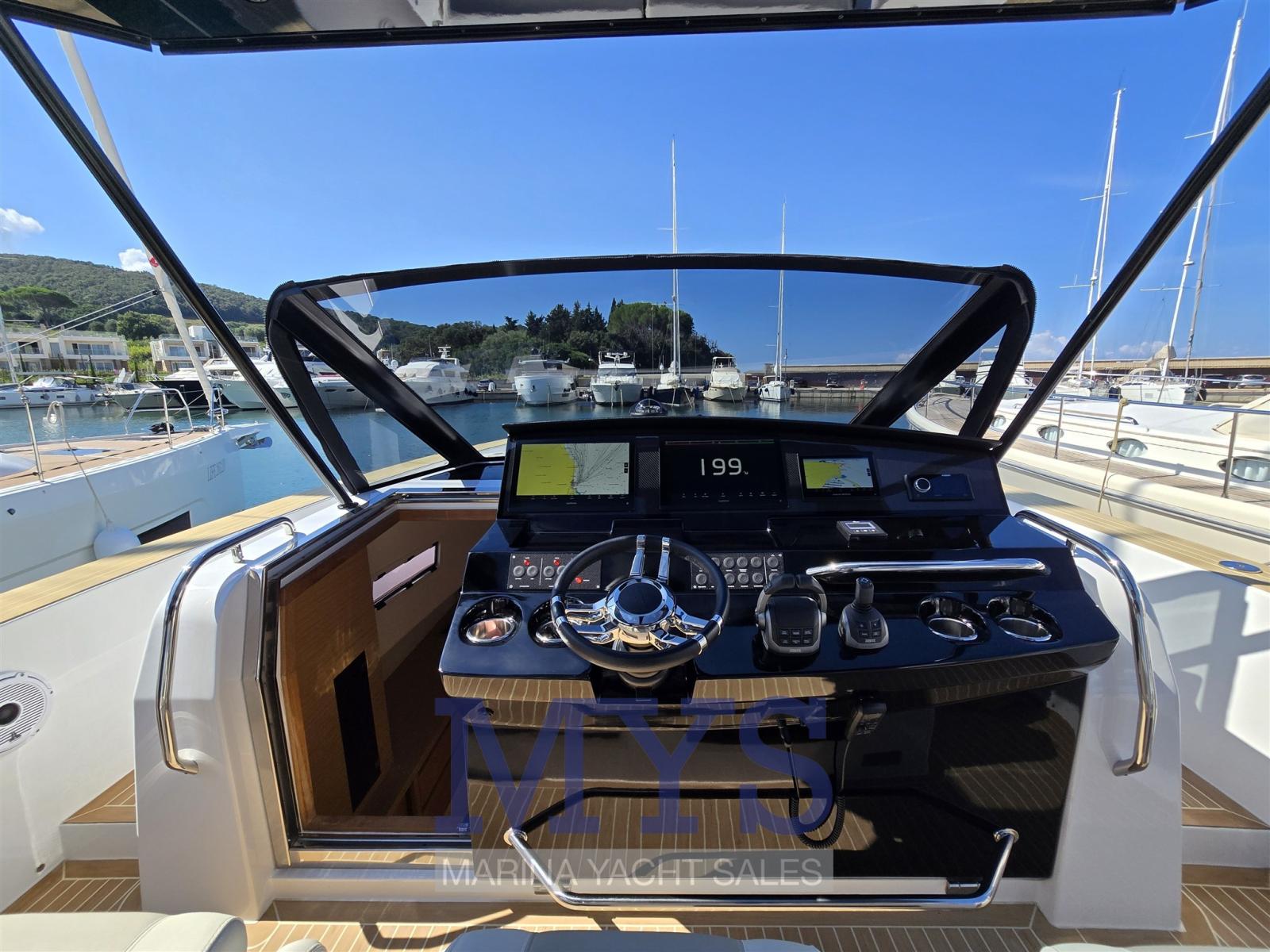 Allarme motore, Allarme sentina, Autoclave, Camminamenti laterali in teak (Teak Sintetico), Doccia esterna, Flap elettrici, Hard top, Passerella, Piattaforma (Con sistema idraulico sali/scendi), Pompa di sentina automatica, Porta ingresso, Pozzetto Teak (Teak sintetico), Presa 220V banchina, Salpa Ancore Elettrico, Scaletta da bagno, Tavolo pozzetto.