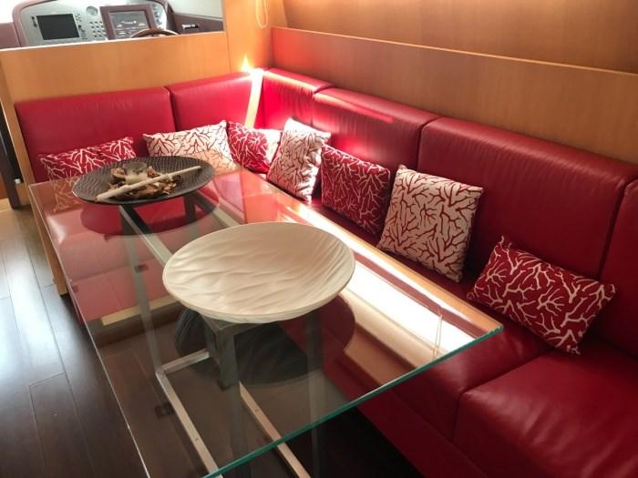 Allarme motore, Allarme sentina, Autoclave, Doccia esterna, Doppia timoneria, Flap idraulici, Impianto antincendio, Lavaggio catena, Pannelli Solari, Passerella (a scomparsa), Piattaforma, Pompa di sentina automatica, Ponte in teak, Pozzetto Teak, Presa 220V banchina, Rollbar, Salpa Ancore Elettrico, Scaletta da bagno, Tavolo pozzetto, Tender (e FB), 2 Winch tonneggio di poppa, Winch tonneggio di prua.