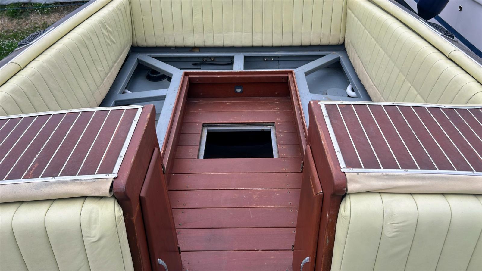 Camminamenti laterali in teak, Pozzetto Teak, Scaletta da bagno, Tuga in teak.