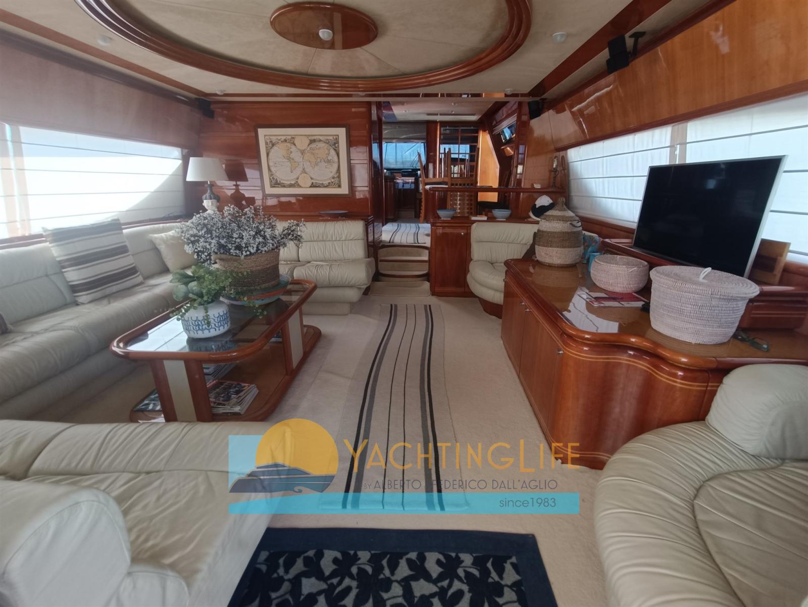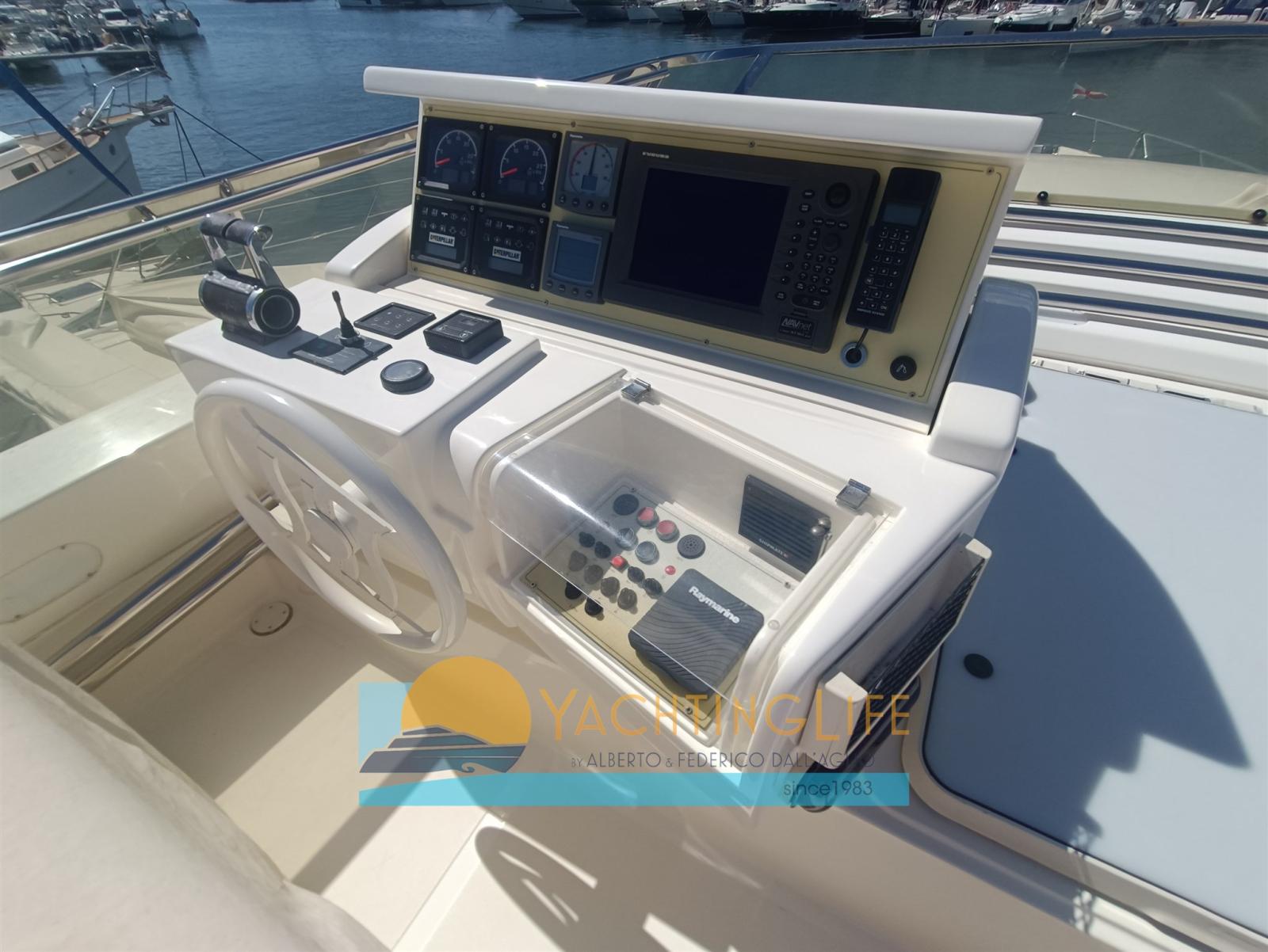 Allarme motore, Allarme sentina, 2 Ancora, Autoclave, 2 Autogonfiabile, Camminamenti laterali in teak, Doccia esterna, Doppia timoneria, Faro orientabile, Flap idraulici, Gruette per tender su fly, Impianto antincendio, Indicatori Flaps, Lavaggio catena, Lavandino nel Pozzetto, Luci di cortesia, Luci subacquee (colorate), Passerella (idraulica), Piattaforma, Pompa di sentina automatica, Porta ingresso, Porta laterale, Pozzetto Teak, Presa 220V banchina, Salpa Ancore Elettrico, Scaletta da bagno, Tavolo pozzetto, Tender (e motore), Tromba, 2 Winch tonneggio di poppa.
